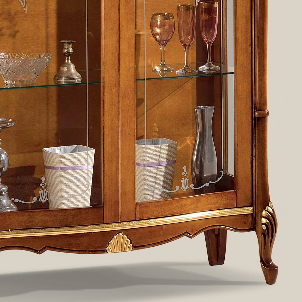 Klasická vitrína do obývacího pokoje se strukturou vyrobenou ze dřeva s ořechem Bassano a starožitným zlatým povrchem se sítotiskem. Jedinečný a vytříbený doplněk, kompletně vyrobený v Itálii zručnými mistry řemeslníky , mistry umění, kteří dotvářejí každý doplněk s moudrostí a chutí pro eleganci. Výroba je prováděna s použitím ušlechtilých materiálů a ručním prováděním práce s maximální pečlivostí a profesionalitou, která odlišuje produkty Made in Italy .