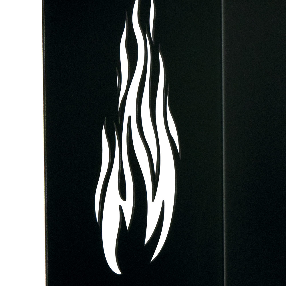 Tento kovový držák na polena spojuje praktickou funkčnost s atraktivním designem a obohacuje prostor vašeho krbu. Černá konstrukce je odolná a pevná, navržená tak, aby pojala velké množství dřeva. Řezy plamenem po stranách slouží nejen jako dekorativní prvky, ale také zajišťují správné větrání, které je nezbytné pro udržení suchého dřeva.