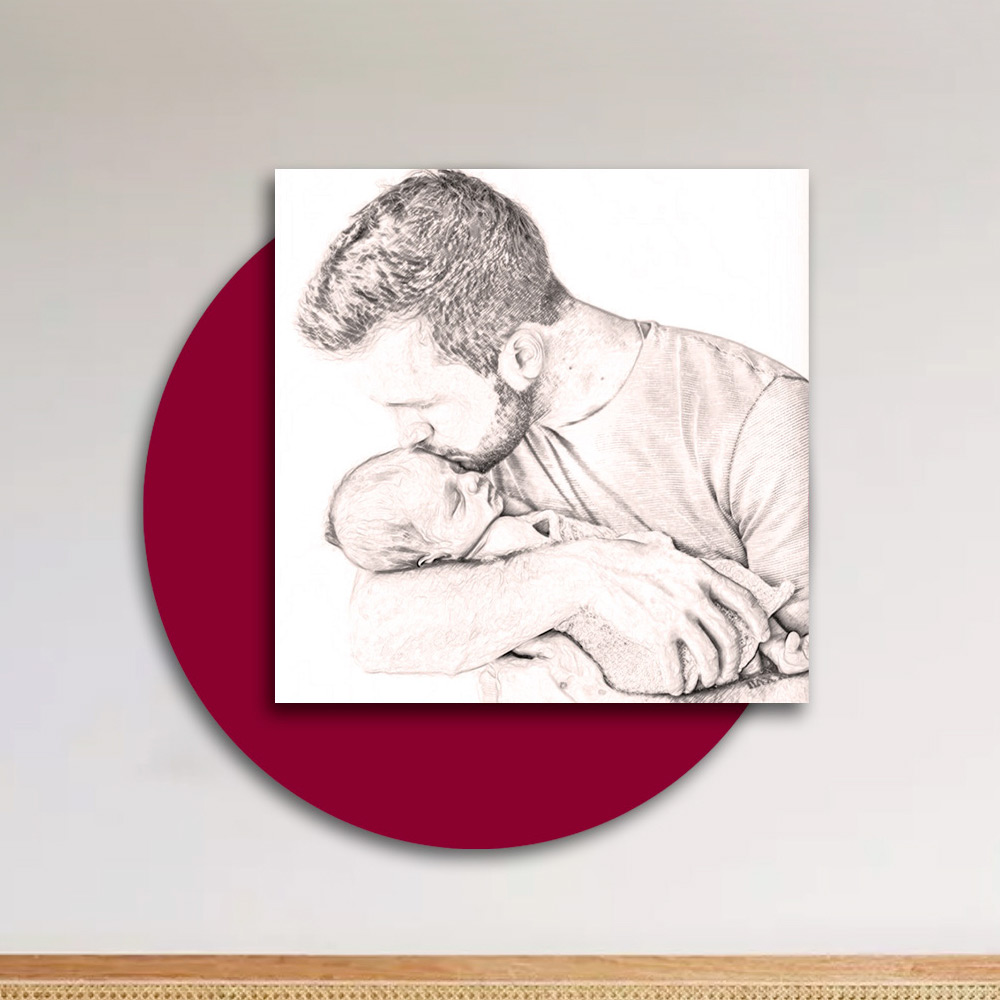 dřeva s potiskem muže líbajícího dítě.