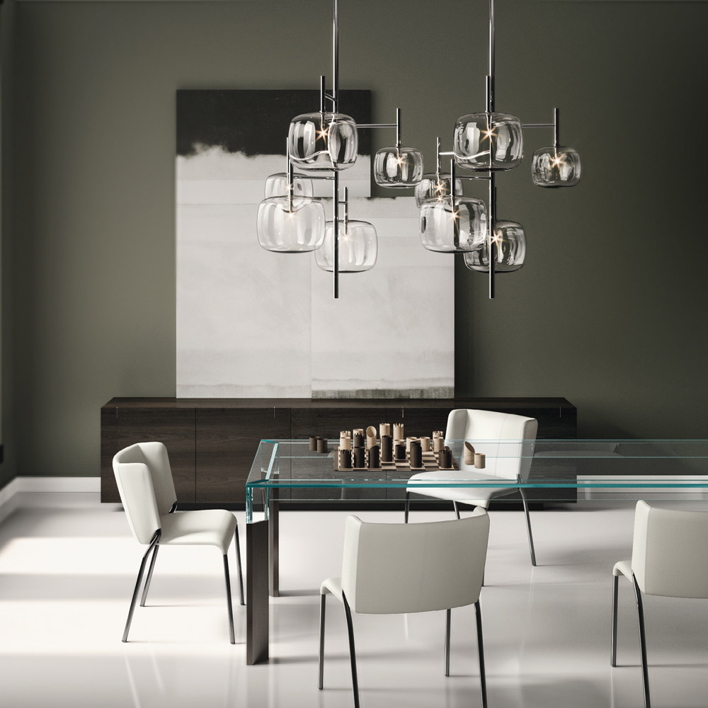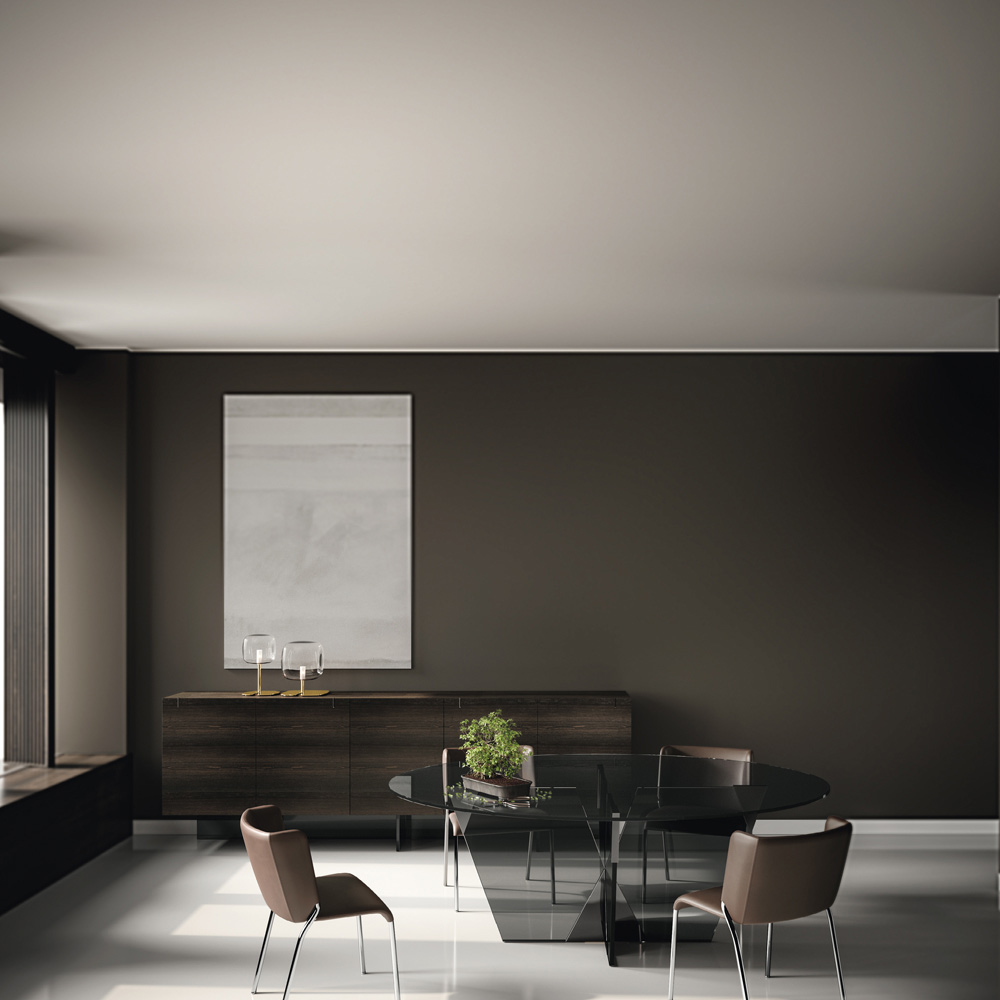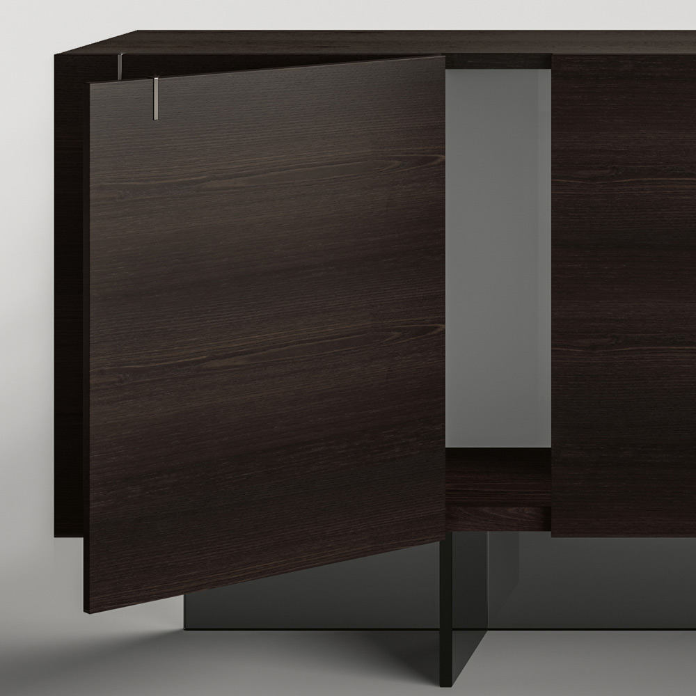 silnou současnou estetikou navržená pro různá použití a různé oblasti domu, přizpůsobitelná pro povrchové úpravy a velikosti podle vašeho vkusu a potřeb. Elegantní kombinace majestátnosti dřeva a rafinovaného dotyku skla dává život