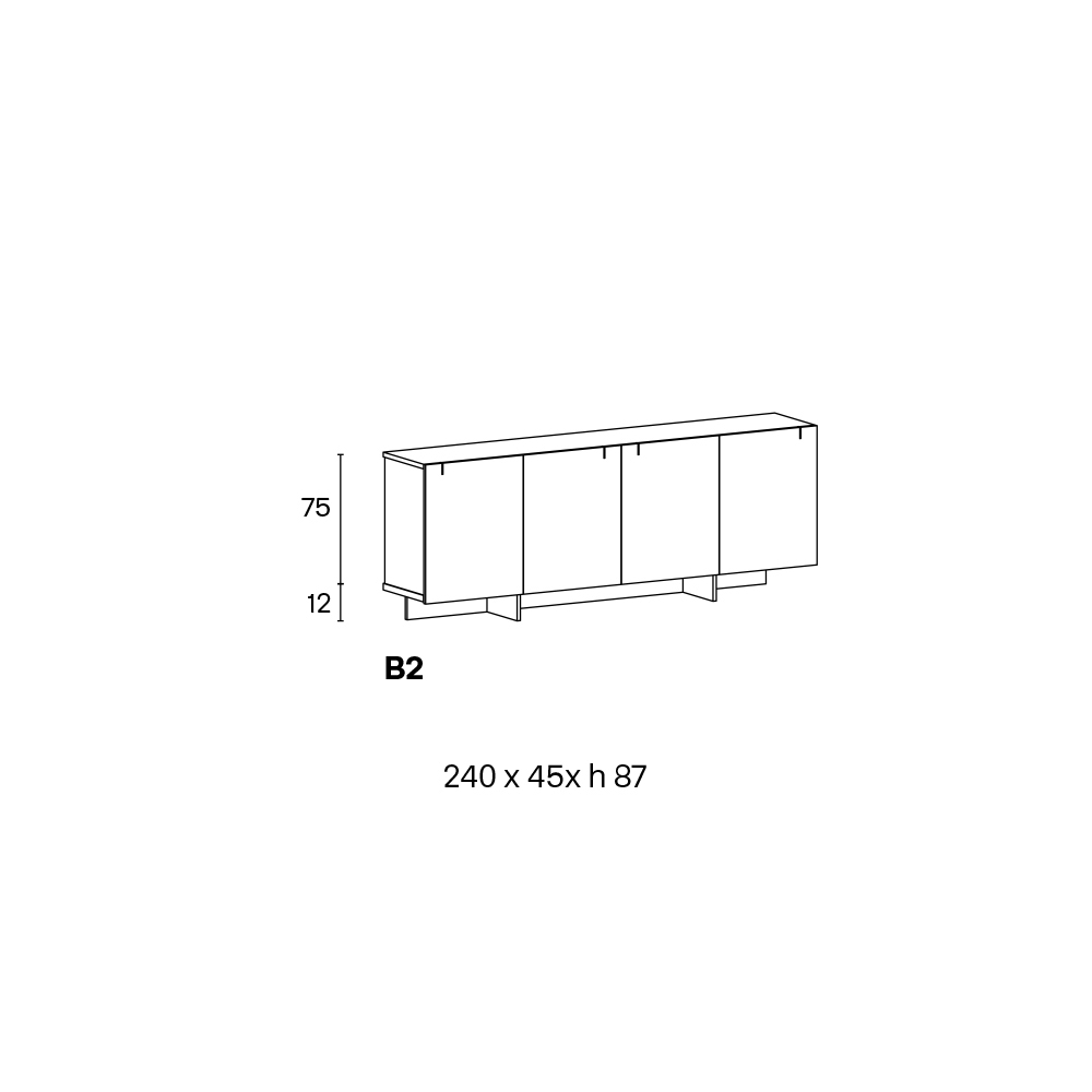 - L 240 x P 45 x V 87 cm (2 přihrádky a 4 posuvné dveře, které lze samy otevřít o 180°);
