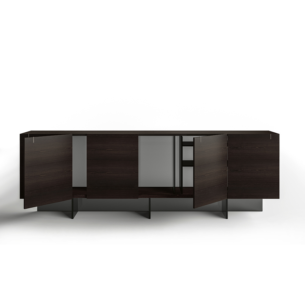 Poznámka : Příborník je k dispozici také s extra čirým skleněným podstavcem. Interiér lze upravit na míru díky praktickým dělícím prvkům v černém lakovaném dřevě.
