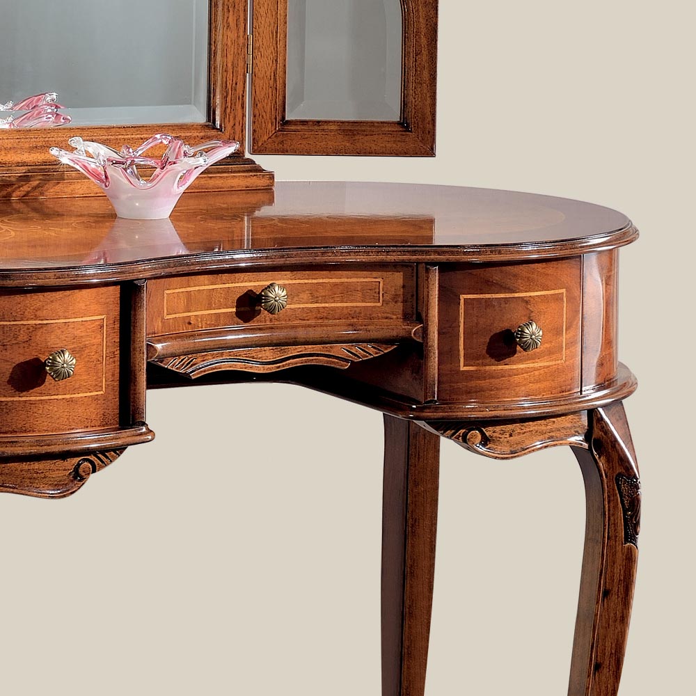 Dřevěný toaletní stolek se zásuvkami a zrcadlem Made in Italy.