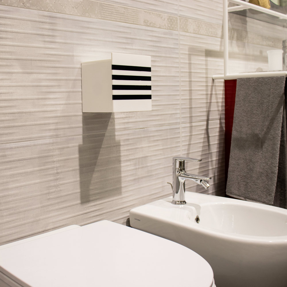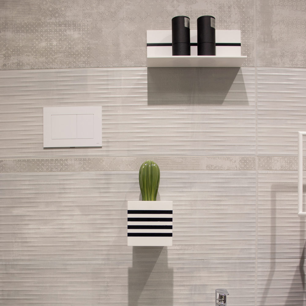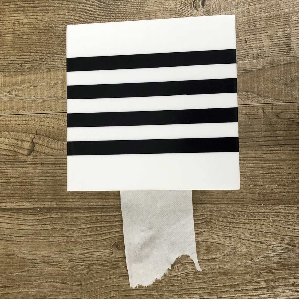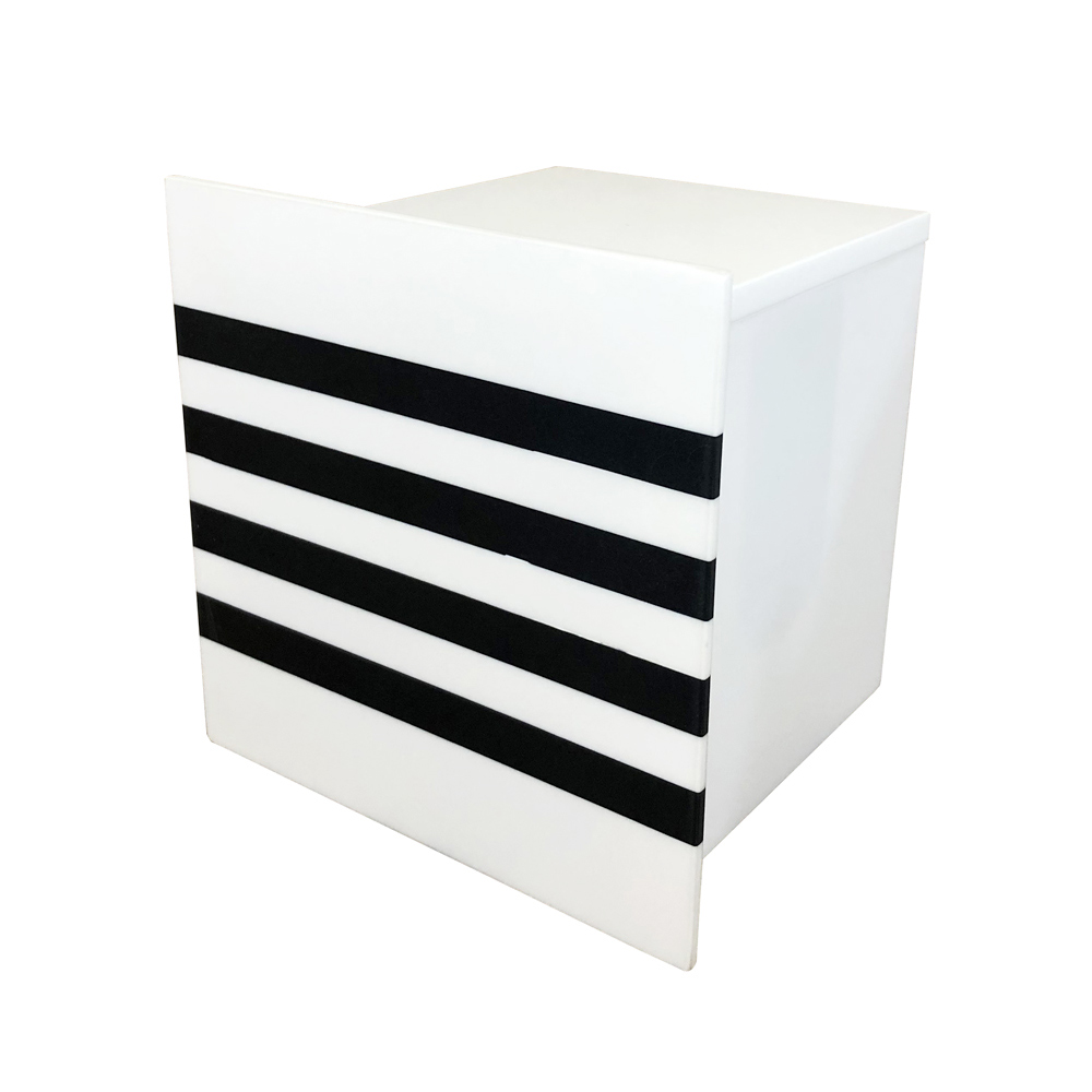 Vyberte si nástěnný držák na toaletní papír o tloušťce 6 mm pro moderní a luxusní atmosféru zcela vyrobenou z bílého nebo bílého corianu s černými vložkami, hygienického materiálu se základními liniemi.
