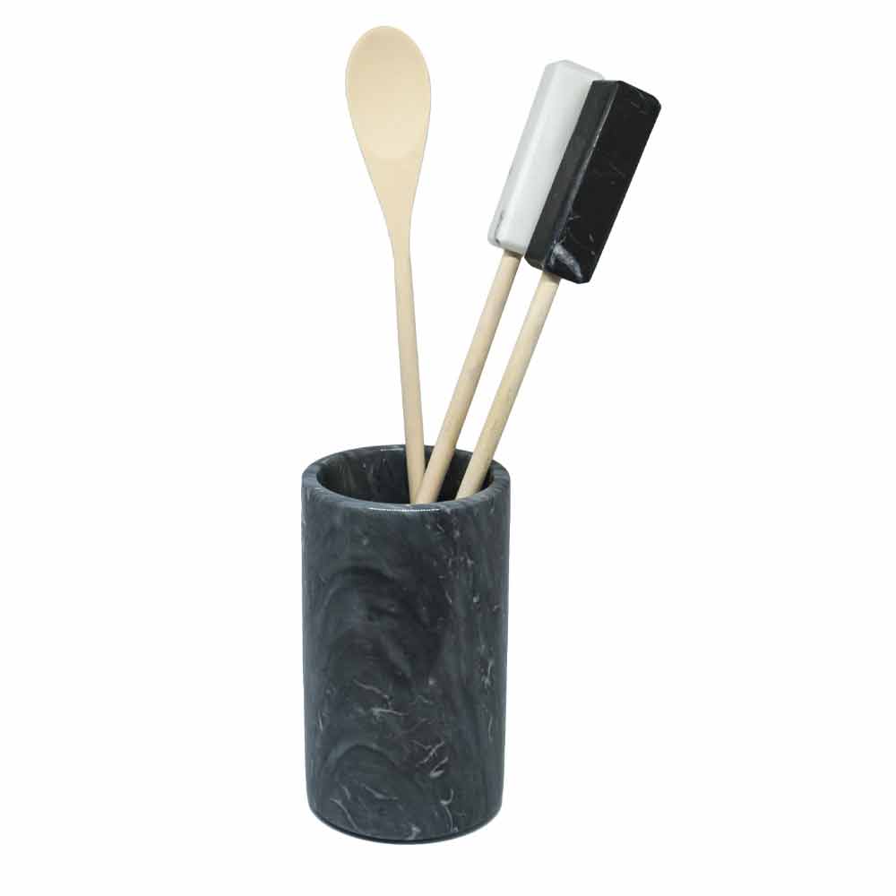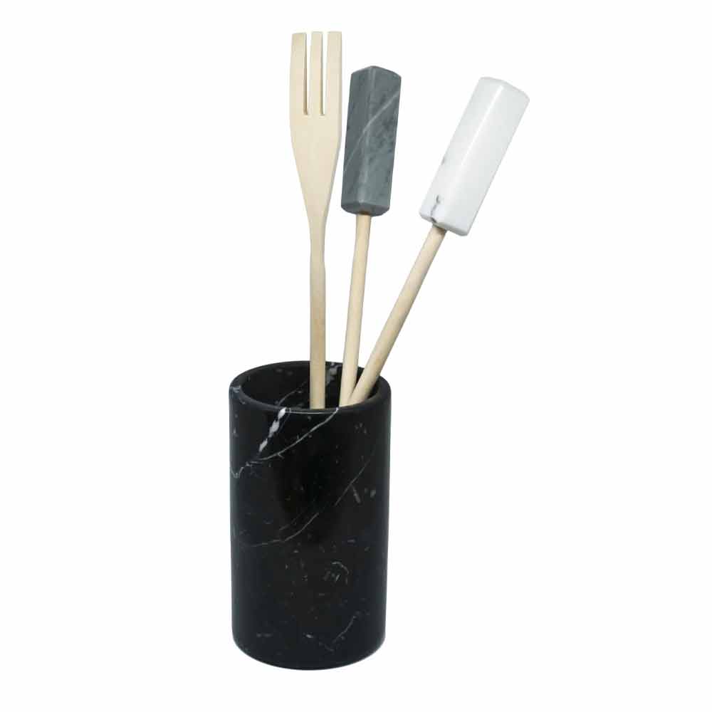 Držák kuchyňského náčiní celý vyrobený z kvalitního jemného mramoru. Jedná se o jedinečný kus, protože každý použitý blok mramoru se liší od ostatních pro žíly a odstíny.