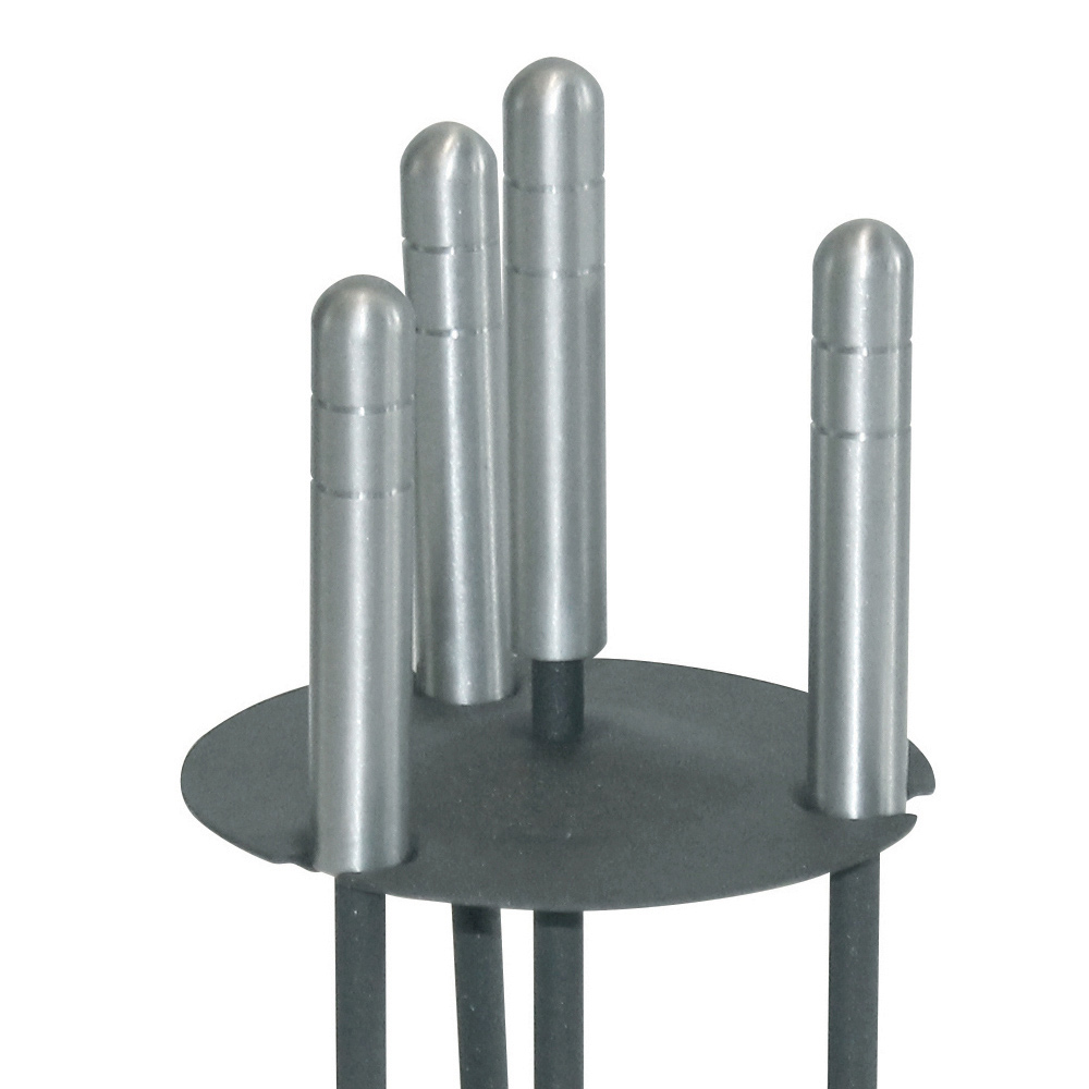 Tenký, ale odolný rám elegantně pojme 3 příslušenství, vše s robustními rukojeťmi, které zajišťují snadnou manipulaci a odolnost . Kompaktní design umožňuje umístit sestavu ke krbu, aniž by zabíral místo, zatímco kulatá základna zajišťuje stabilitu a pořádek.