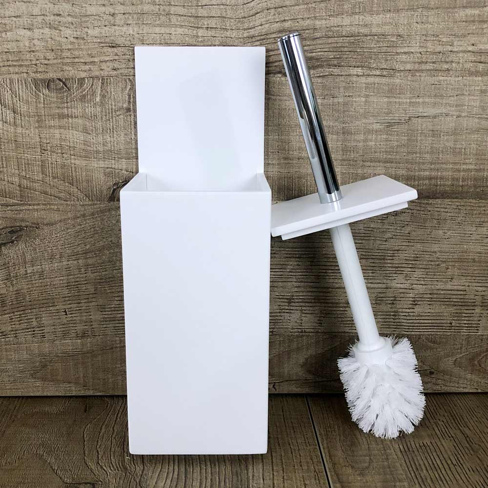 Držák na toaletní kartáč v bílém corianu nebo s černou designovou vložkou, vysoká kvalita vyrobená v Itálii.