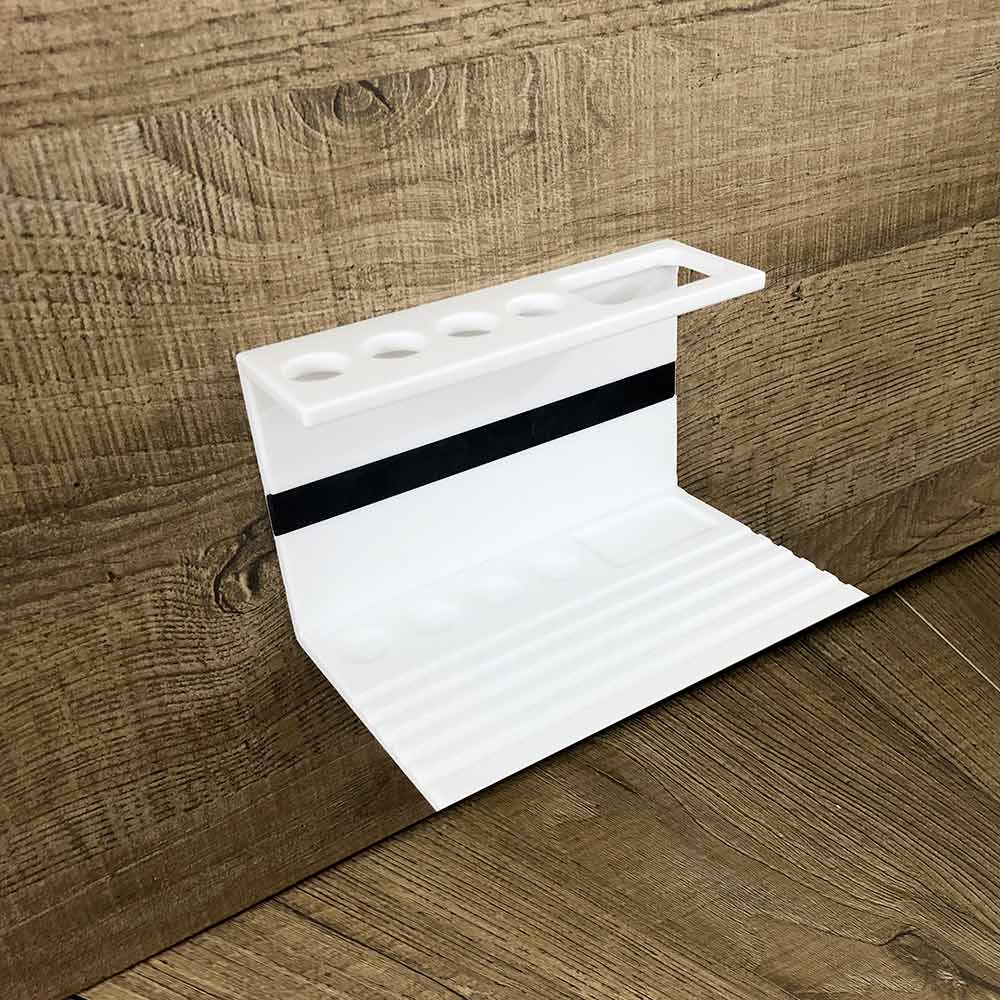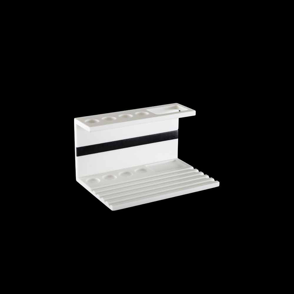 Držák na zubní kartáček do koupelny v bílém nebo bílém corianu s černou vložkou vysoké kvality vyrobené v Itálii.