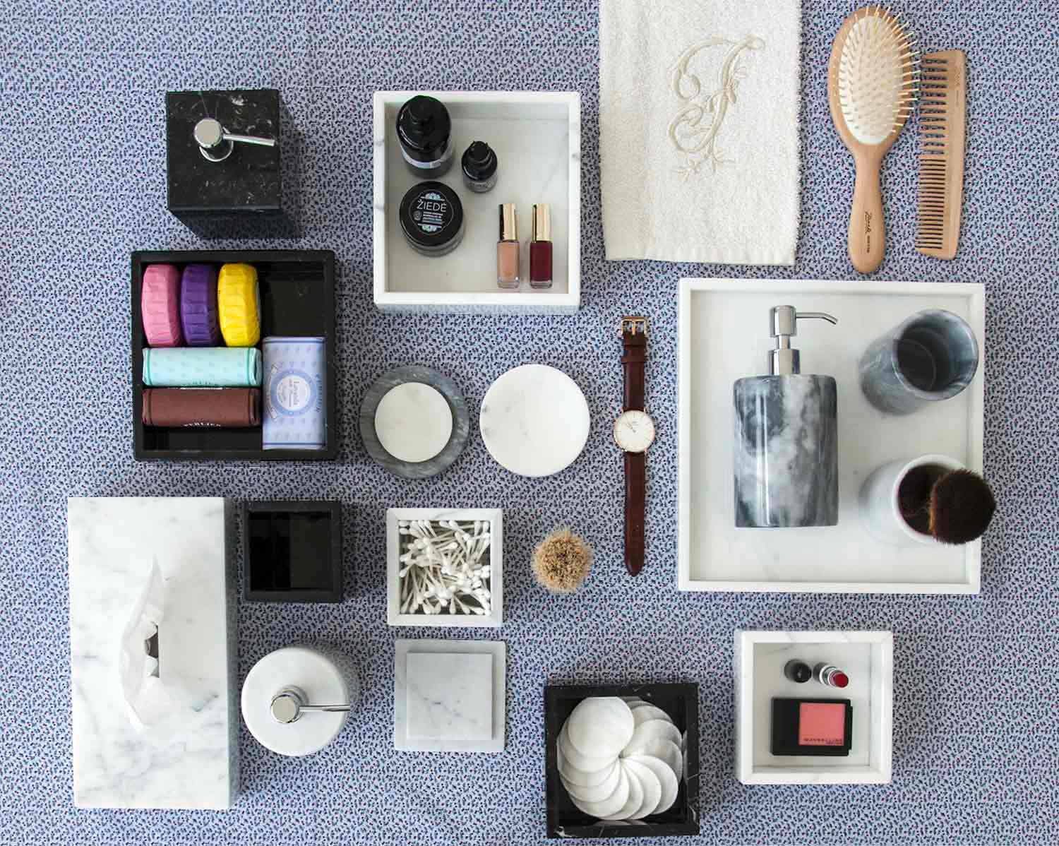 Sklo držáku zubního kartáčku zcela vyrobené z mramoru Paonazzo, různé druhy vzácného mramoru typické pro italskou tradici, které se vyznačuje máslově bílým pozadím s žilkami od intenzivní modré po oranžovou.