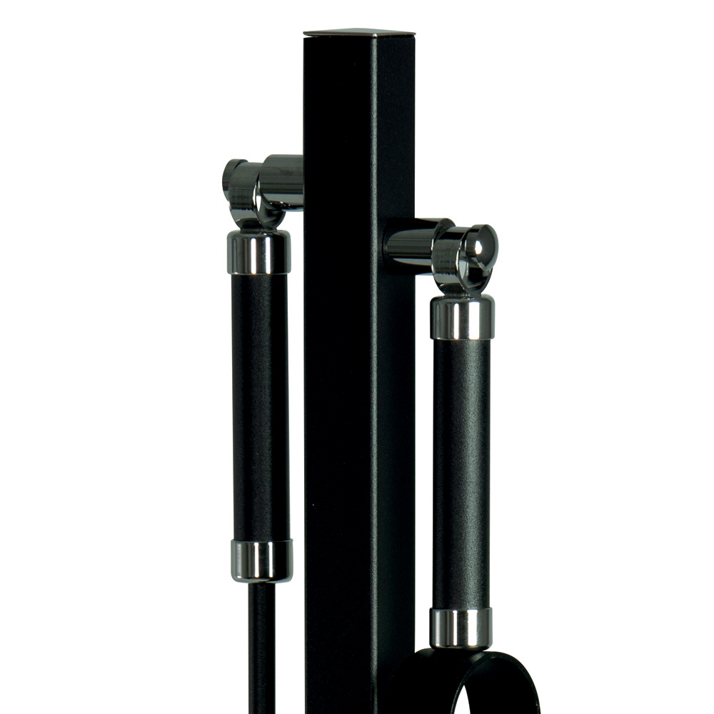 Elegantní a štíhlý design tohoto držáku krbového nářadí je dokonalou syntézou mezi funkčností a moderním stylem. Čisté linie a základní estetika dodávají vašemu prostředí nádech sofistikovanosti.