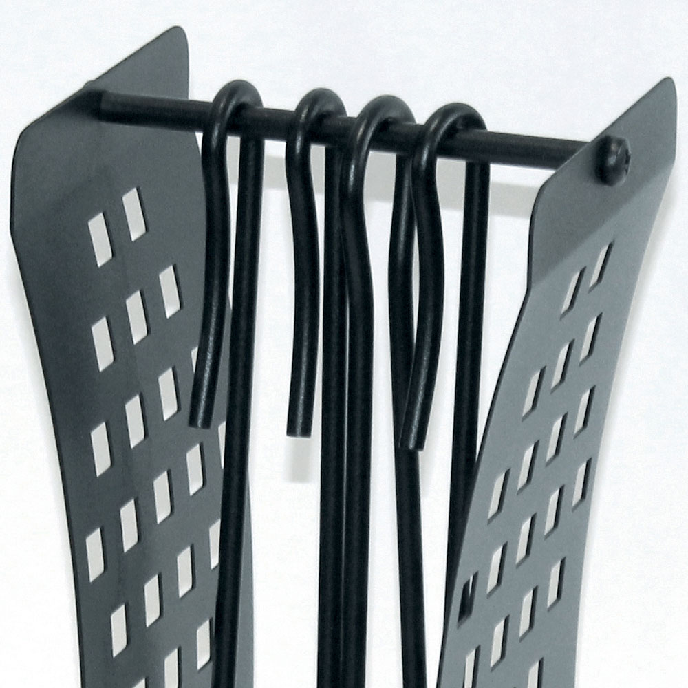 Díky pevné konstrukci a černé povrchové úpravě zajišťuje dlouhou životnost a snadnou údržbu . Pevné rukojeti nabízejí bezpečné uchopení, což vám umožní efektivně a bez námahy řídit oheň. Základna je navržena tak, aby udržovala nástroje ve vzpřímené poloze, optimalizovala prostor a přispívala k uklizenému prostředí.