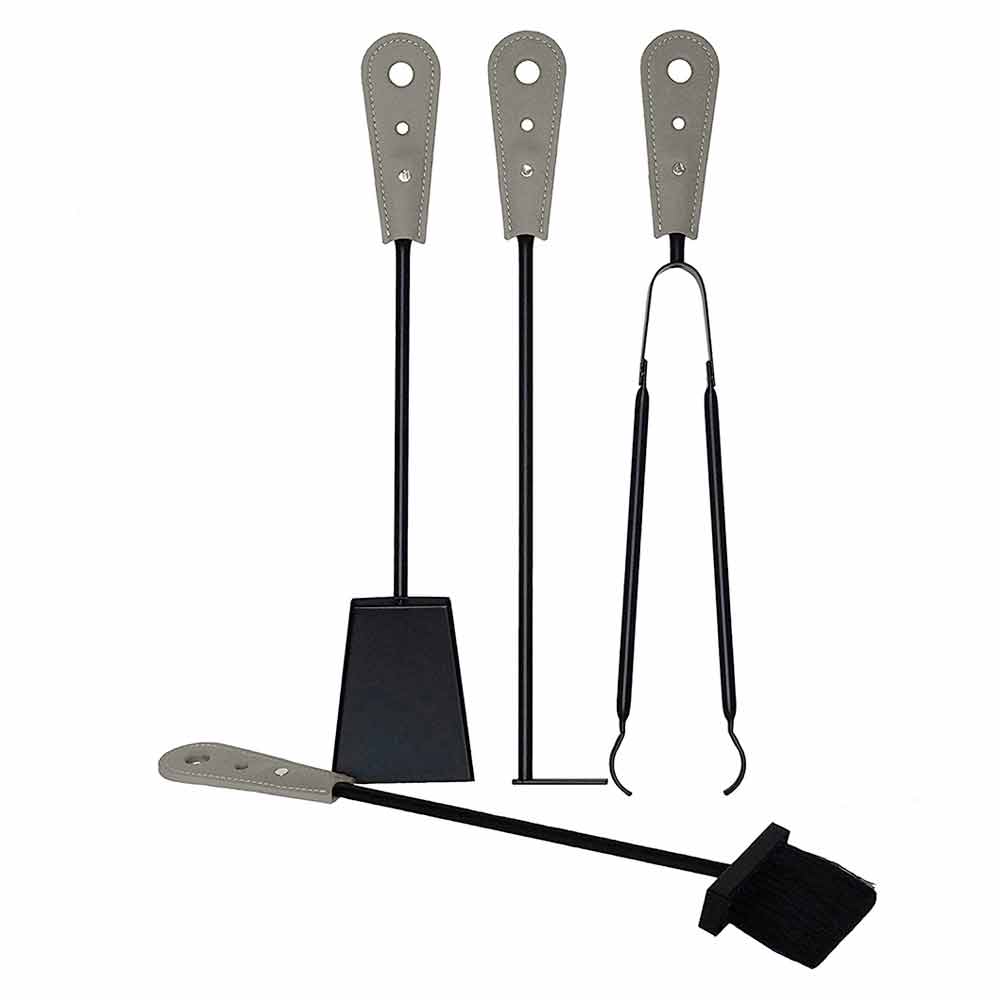 Pro dokončení kompozice je sestava krbových žehliček z lakované oceli a kompletní s koženou rukojetí. Sada příslušenství pro krb obsahuje: lopatku, pokeru, pružinu a kartáč na WC, všech 65 cm dlouhá.