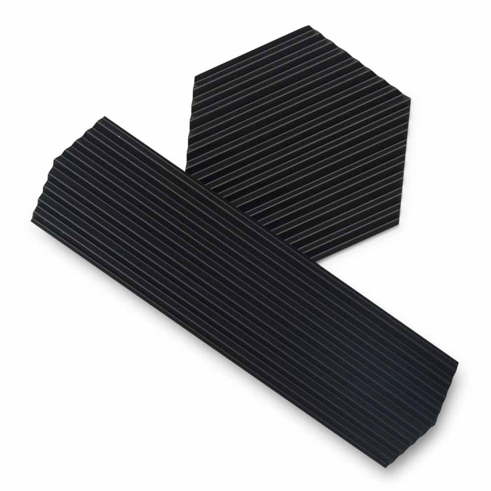 praktickému stylu, který je odlišuje. Obdélníkový a šestihranný tvar v kombinaci se strukturou "cik cak" umožňuje získat dva vysoce