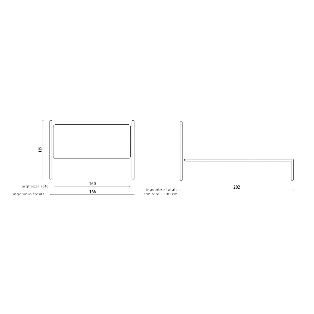 - čelo s rámem postele, bez roštu: délka 166 x hloubka 202 x výška 139 cm