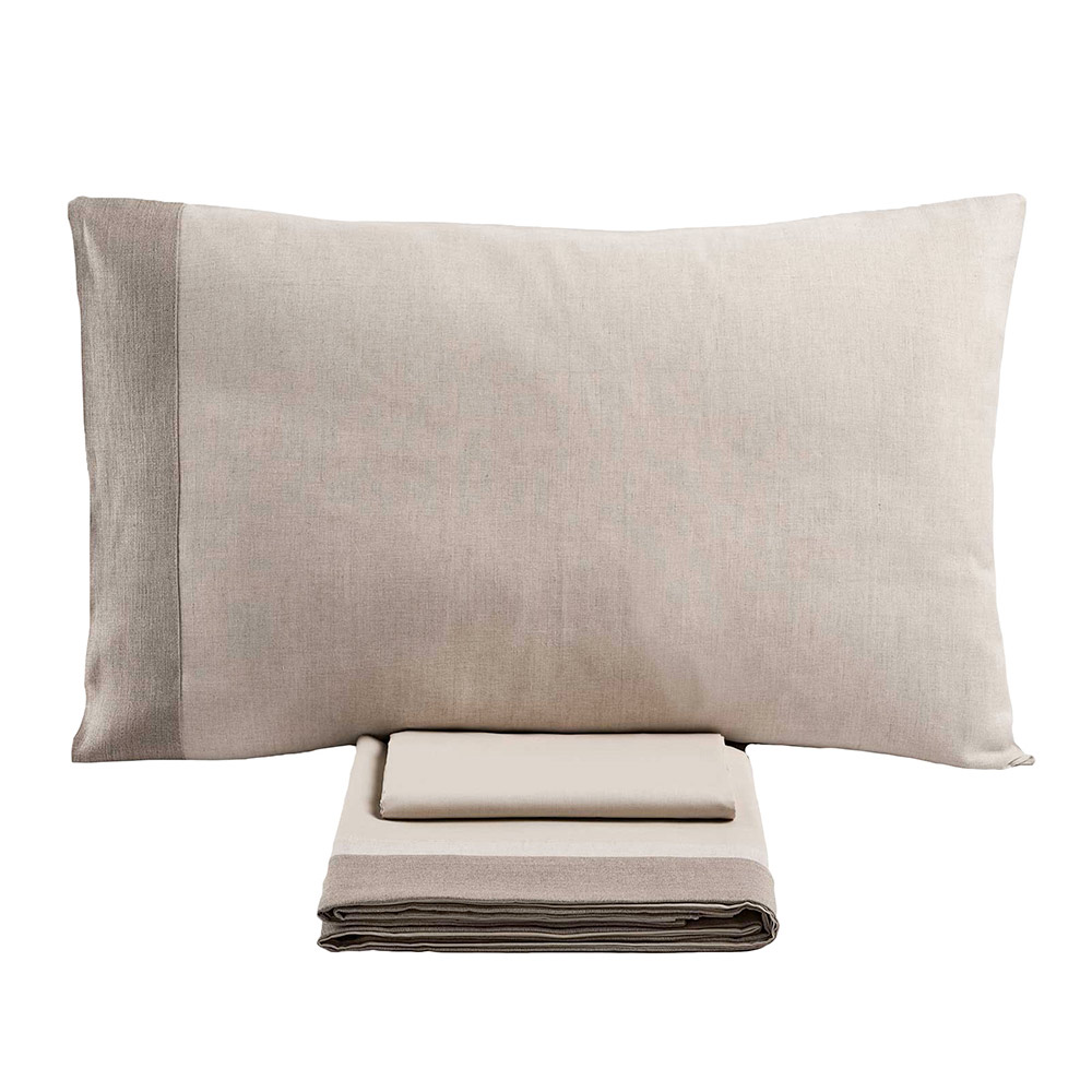Objevte dvojlůžkovou soupravu vyrobenou z jemné směsi 90 % bavlny a 10 % lnu , ideální kombinaci pro ty, kteří hledají maximální pohodlí v kombinaci s dokonalým designem. Toto jedinečné složení spojuje měkkost a prodyšnost bavlny s odolností a přirozenou svěžestí lnu a nabízí vynikající zážitek ze spánku v každém ročním období.