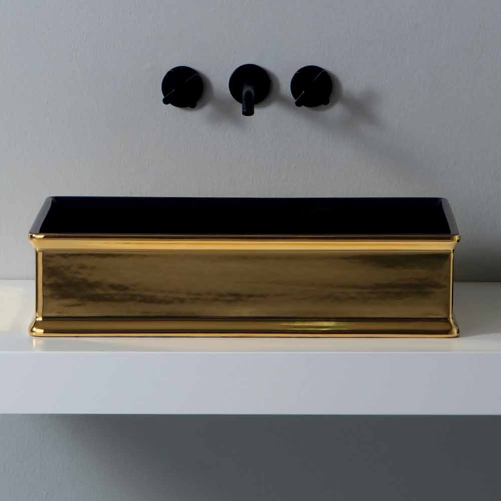 Umyvadlo na desku ve zlaté / černé keramice vyrobené v Itálii Debora