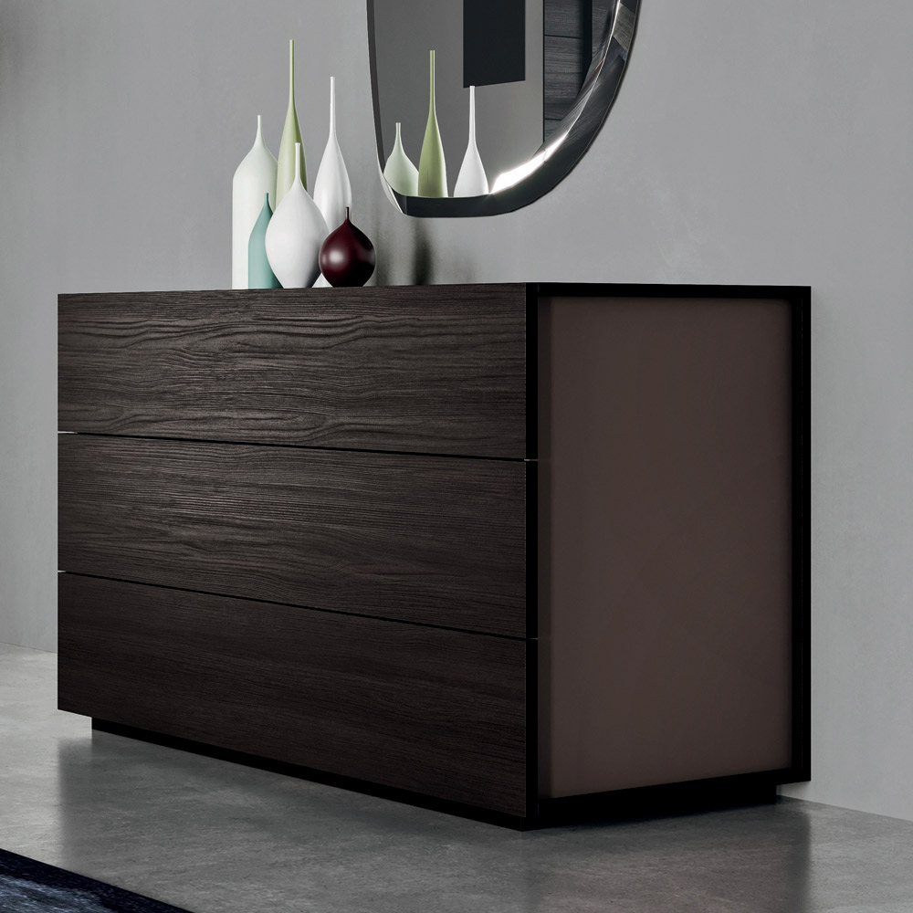 komodu se 3 zásuvkami v povrchové úpravě z uhlí a matného hliníku a