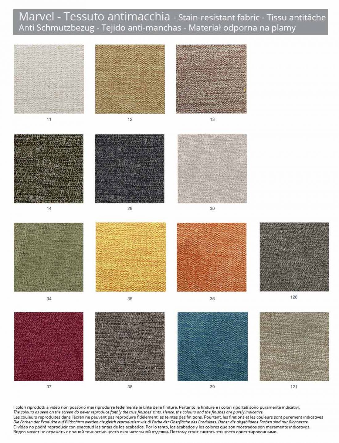 Strukturované dřevo pokryté vrstvou polyuretanu a kovových mechanických částí Polstrování ekologicky šetrné polyuretanové pěny s různou hustotou pokryté vrstvou dacronu Nohy wengè dřevo