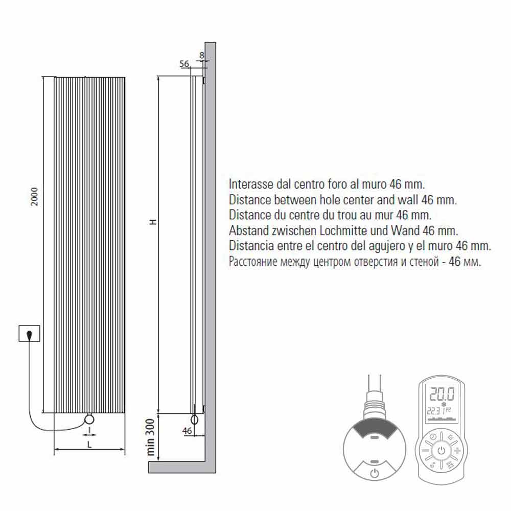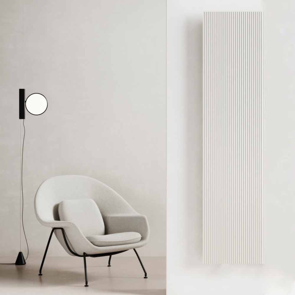 elektrický radiátor má moderní design, jehož skutečným protagonistou je architektura, charakterizovaná liniemi se střídavým rytmem, které vytvářejí hry světla a dialogy s okolním prostorem.