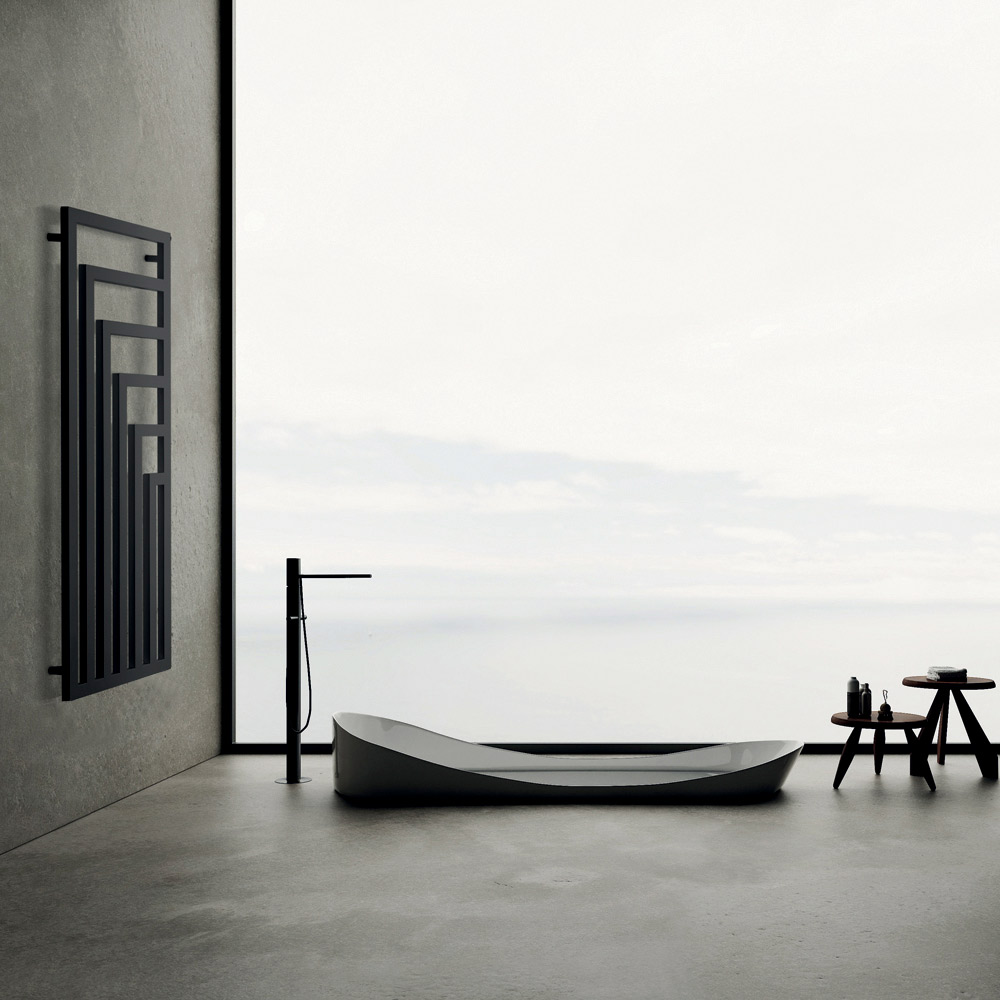 Tento ocelový radiátor ztělesňuje dokonalost minimalistického designu a nabízí stylové a sofistikované řešení vytápění pro jakýkoli moderní prostor. Jeho vertikální struktura, charakterizovaná tenkými liniemi a přehledným uspořádáním, přeměňuje funkční prvek ve skutečné nástěnné umělecké dílo, ideální pro současné prostředí.