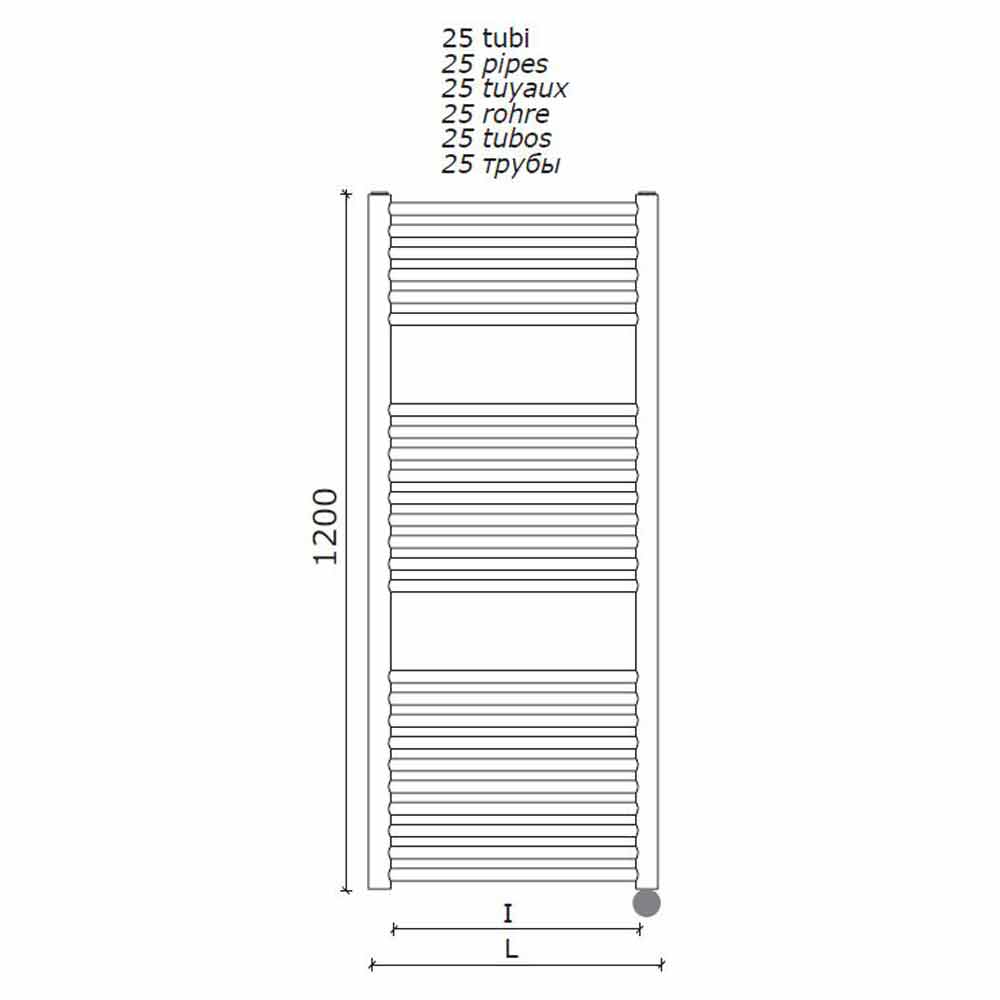 Nástěnný elektrický ohřívač ručníků do koupelny svislého designu vyrobený v Itálii.
