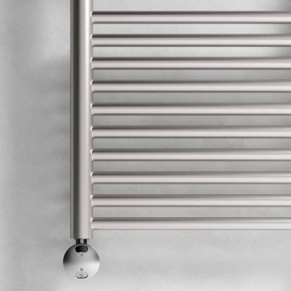 elektrický ohřívač ručníků do koupelny má ideální design pro milovníky jednoduchých a základních linií, vhodný pro minimální a pohodlné kontexty.
