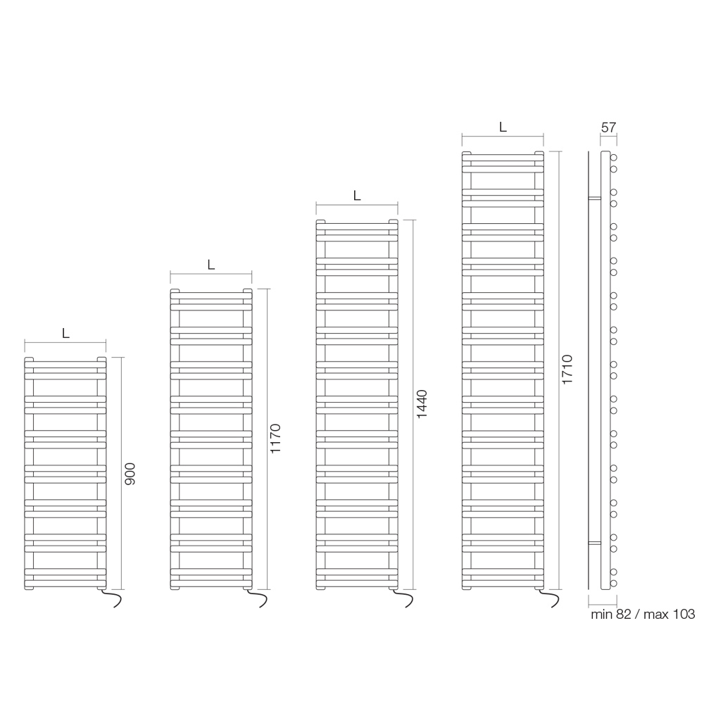 - Délka 40 cm – Hloubka 8,2 cm – Výška 90 cm – Příkon 300 W