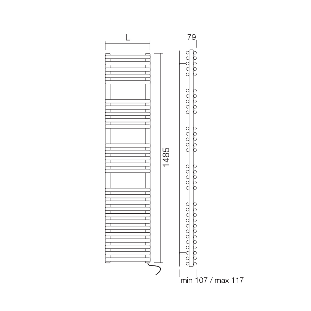 Elektrický ohřívač ručníků z uhlíkové oceli Made in Italy