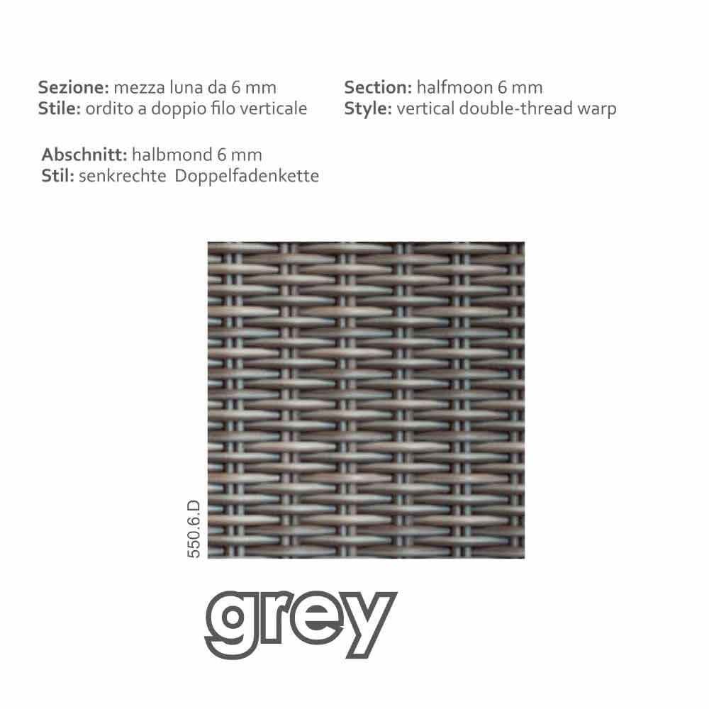 Ania je tvořen hliníkovým rámem a konstrukce z polyethylenu vysoké kvality půlměsíce, v šedém provedení - tmavošedý 6 mm, zcela ručně tkané.