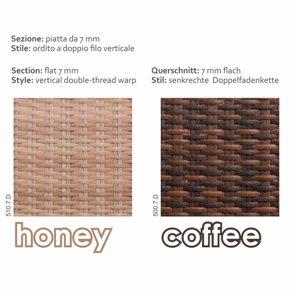 - vlákna polyetylén HDPE (ze syntetických vláken, odpovídající přírodní ratan vlákno se silnou vizuální a hmatový podobnosti přírodních vláken)