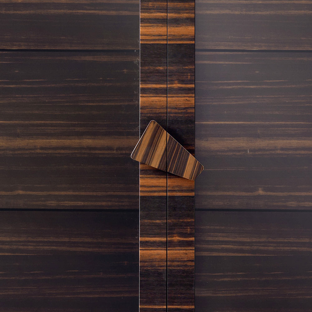 Dvoudveřová vitrína Zarafa se vyznačuje řemeslným zpracováním prováděným pomocí kvalitních materiálů a zkušeností zkušených italských řemeslníků.