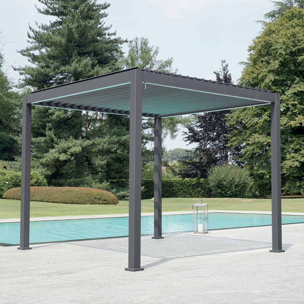 Objevte potěšení z venkovního prostředí s touto elegantní zahradní pergolou , ideální pro ty, kteří si chtějí ve svém venkovním prostoru vytvořit relaxační nebo zábavní zónu. Díky robustní antracitově šedé hliníkové konstrukci tato pergola zaručuje trvanlivost a odolnost vůči živlům, což vám umožní užívat si zahradu v každém ročním období.