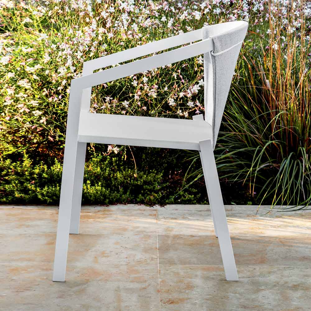 stohovatelné venkovní židli rafinovaný design, který ji odlišuje a personalizuje ve své formální vyrovnanosti.