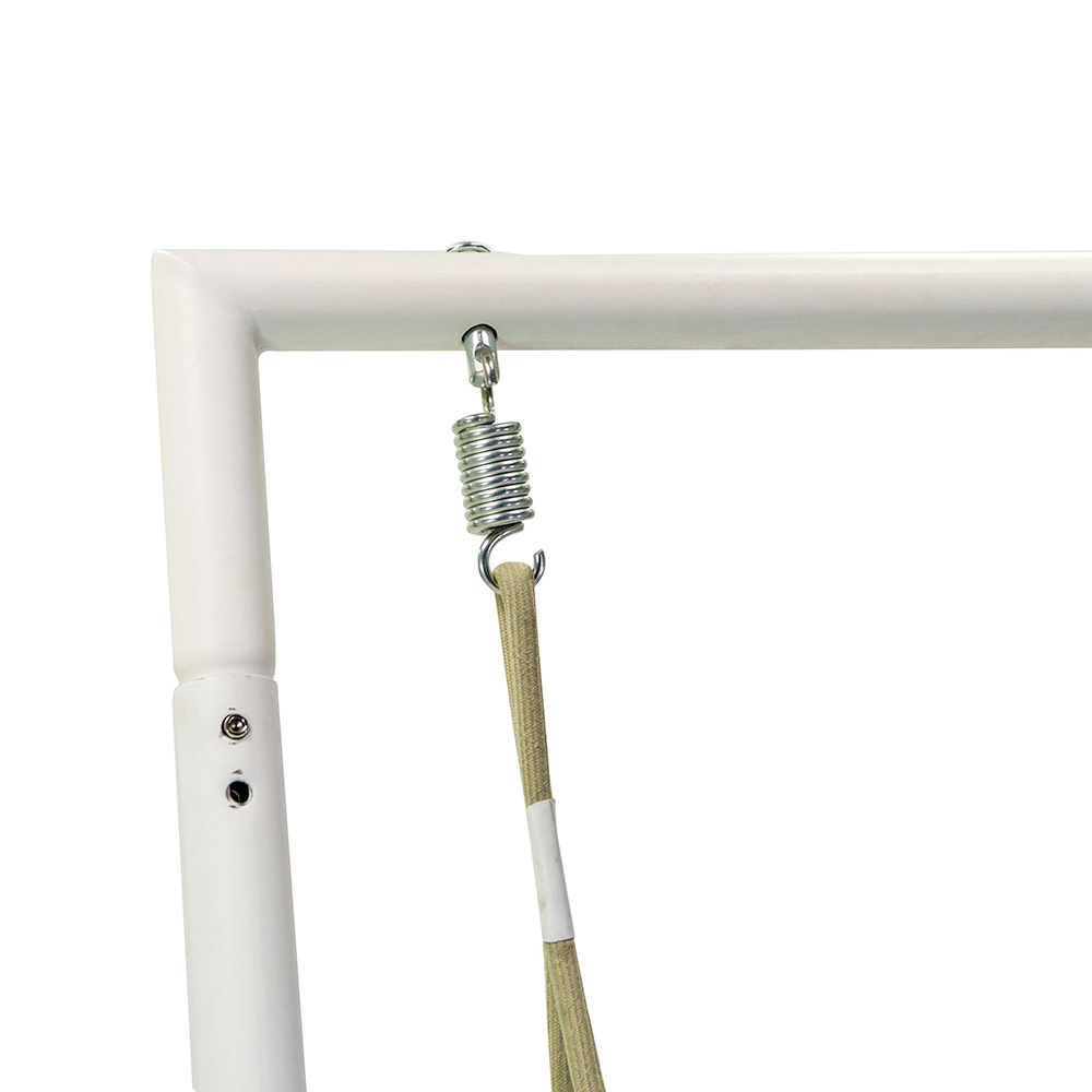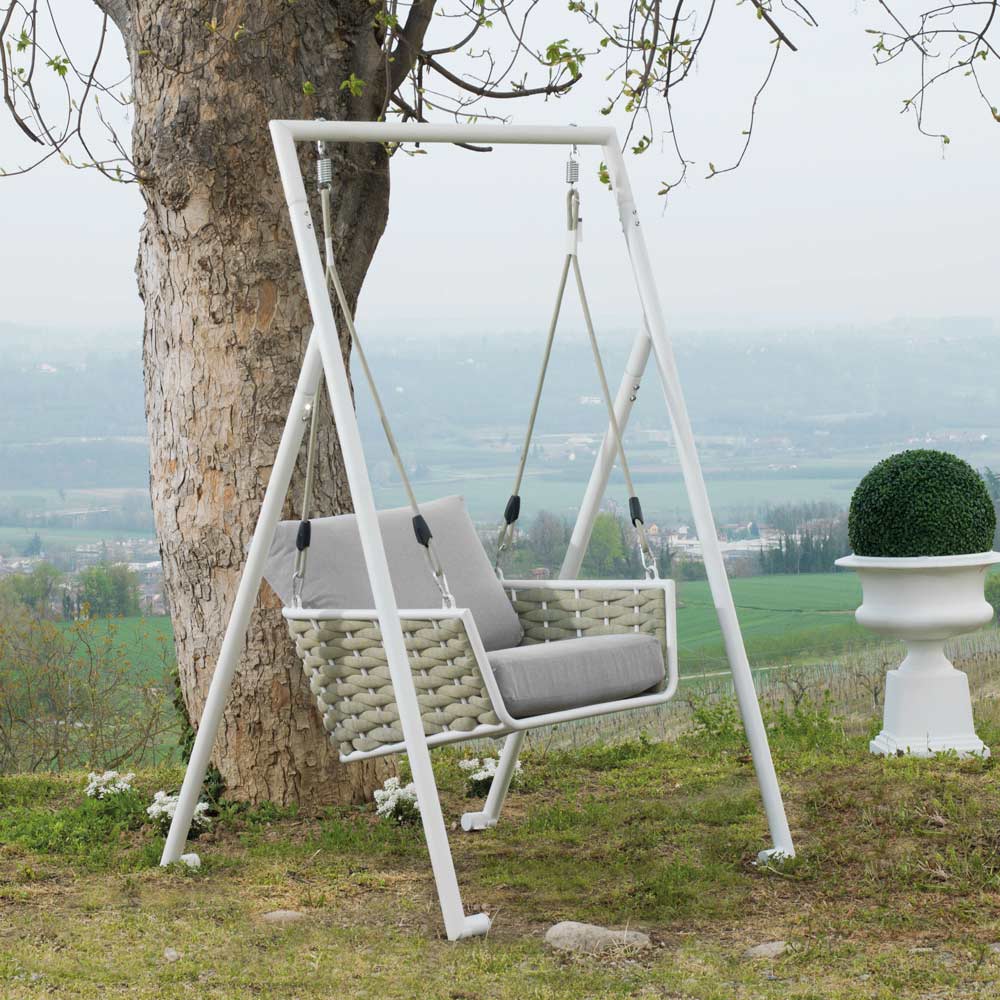 Houpačku doplňují tlusté a pohodlné polštáře z voděodolné tkaniny, které vybízejí k dlouhým odpoledním čtením nebo klidným přestávkám na kávu. Moderní a minimalistický design zdůrazněný čistými liniemi bílé konstrukce se dokonale hodí do každého venkovního prostředí a dodá mu dotyk současného stylu .