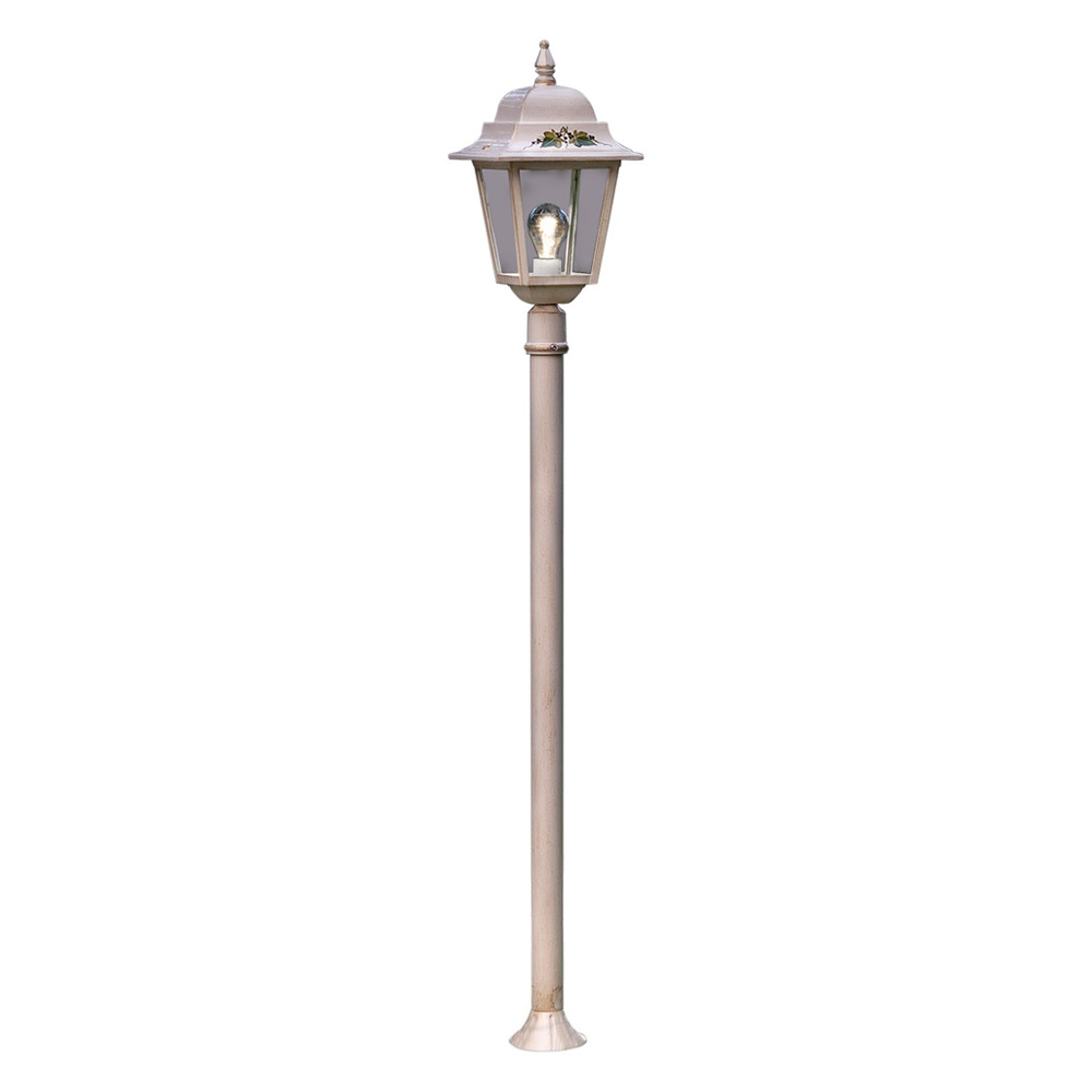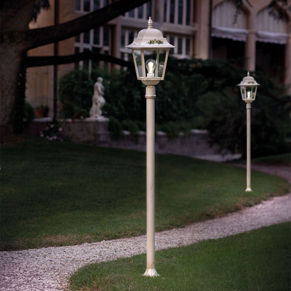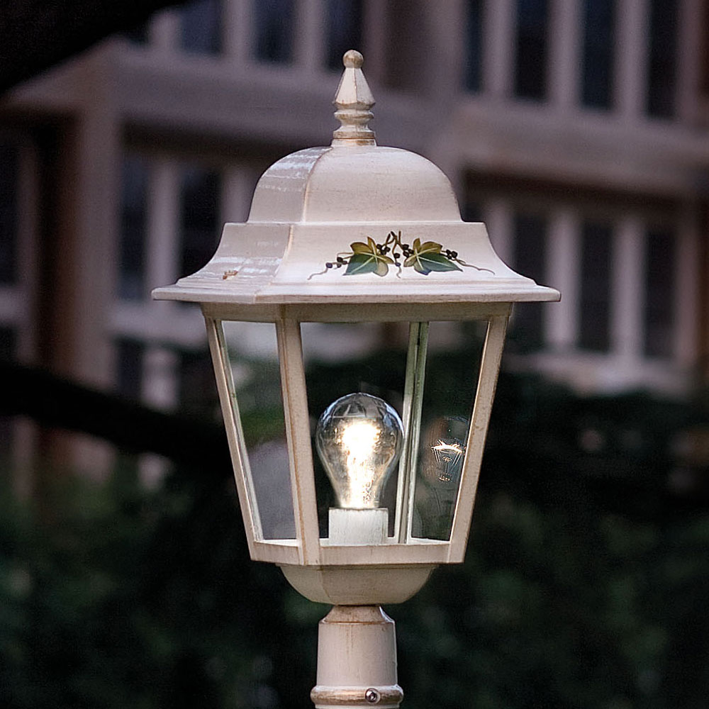 Tento venkovní kandelábr je celý vyroben z bílého hliníku zdobený ručně malovaným břečťanem pro klasický a harmonický styl mezi tvarem a barvami.