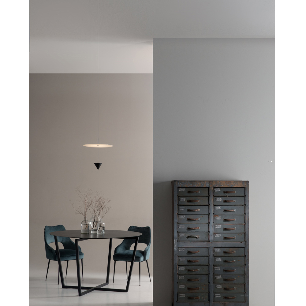 Lampa je vyrobena s neprůhlednou hliníkovou konstrukcí pro zcela italský design, který díky nekonvenčnímu experimentování a neustálému výzkumu mezi tradicí a moderností dokáže ohromit, odvážit se a vzrušit, což vám umožní vyjádřit své emoce prostřednictvím originálního a osobního dekorativního použití. světla.
