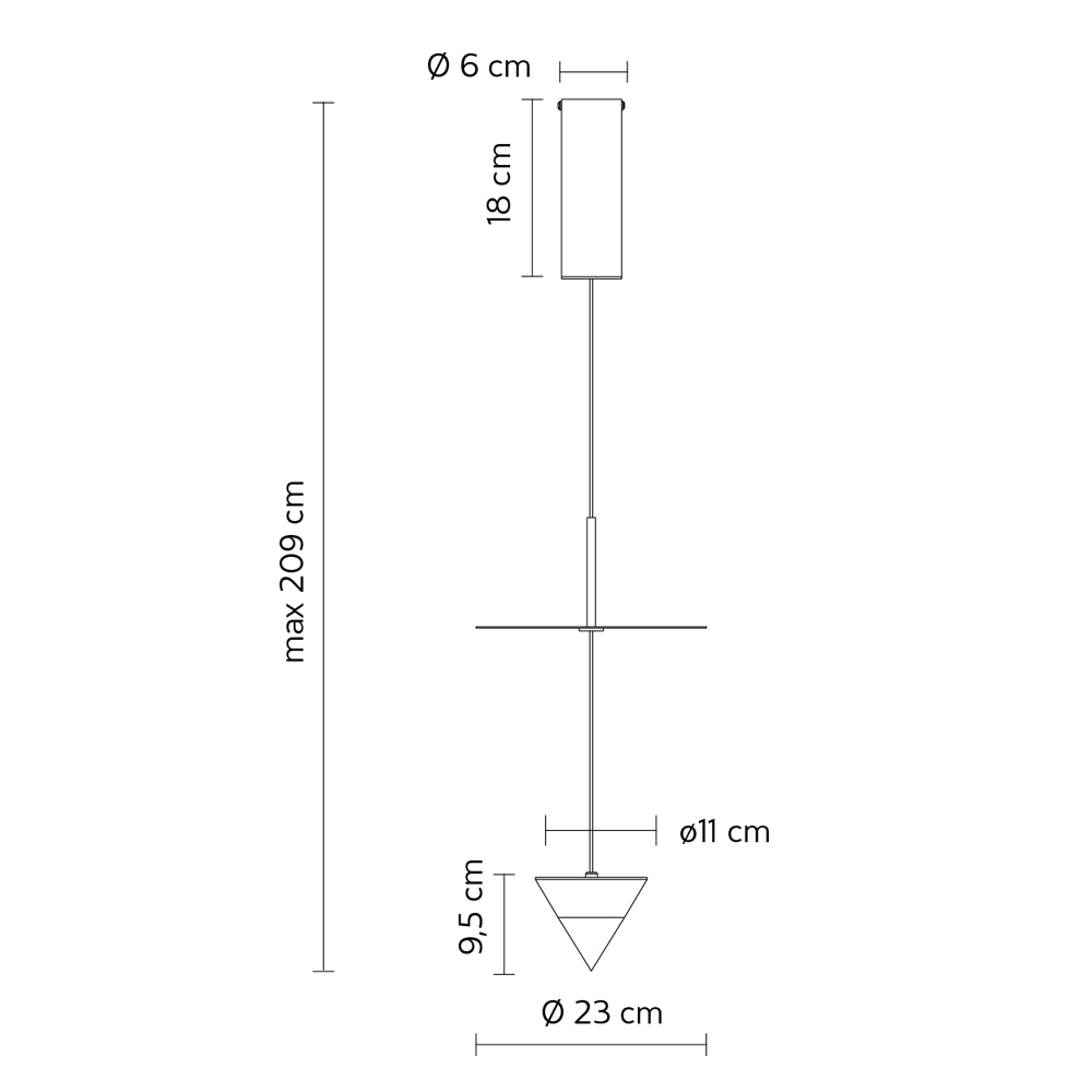 Skládá se z kruhového dekorativního prvku z bílého hliníku a černého kužele .