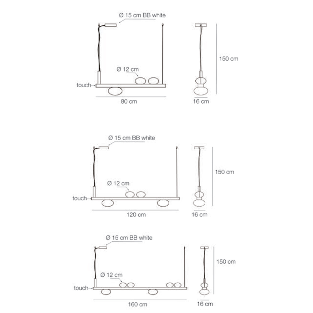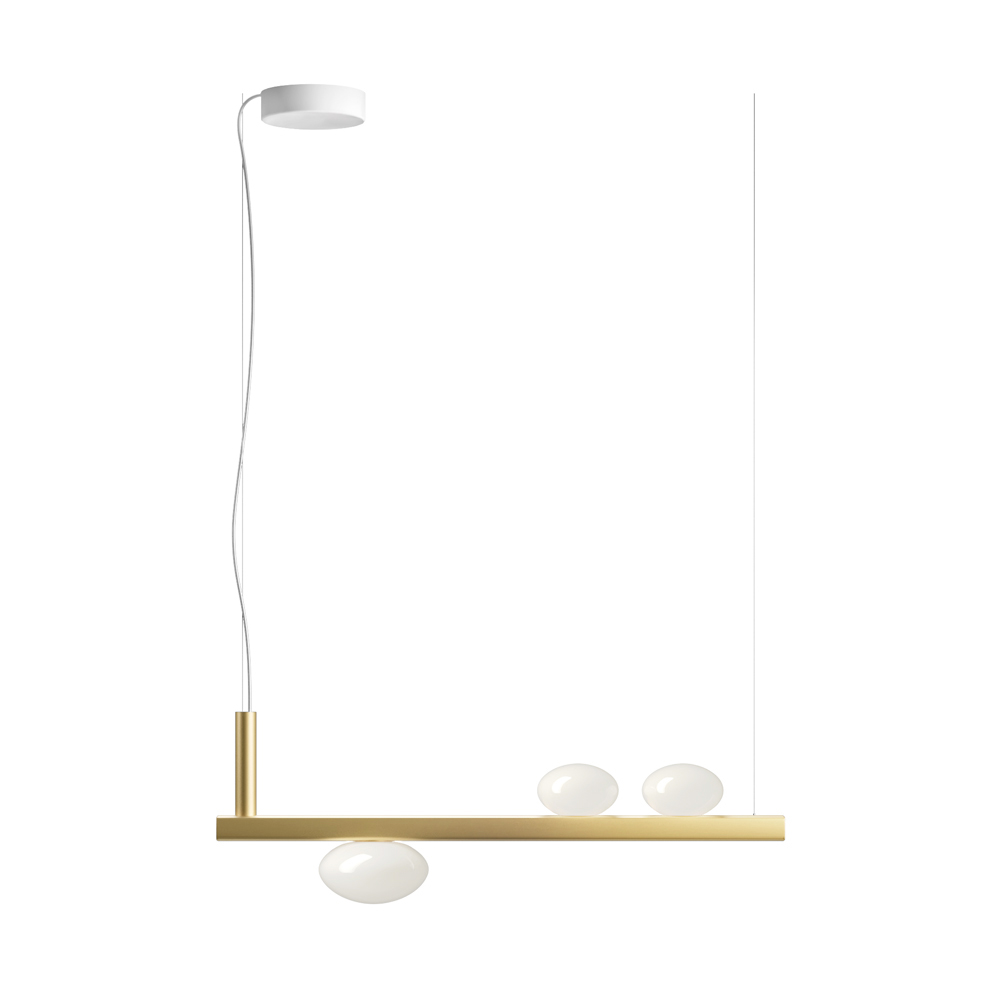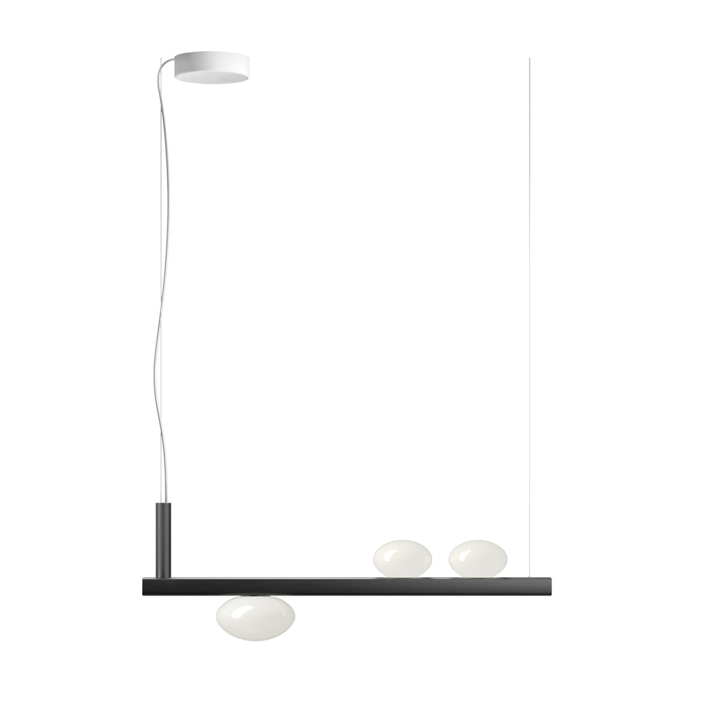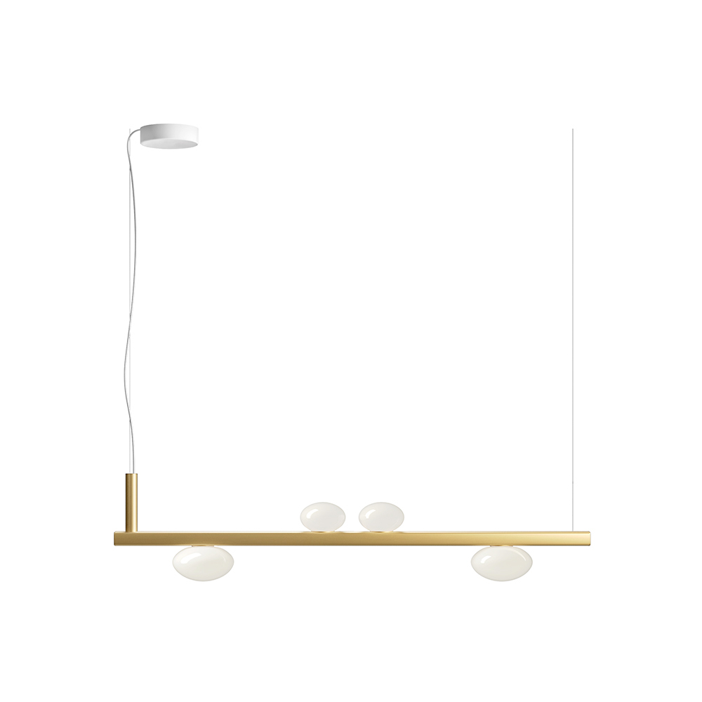 Tato závěsná lampa je skutečnou ikonou inteligentního designu a diskrétní technologie . Její čistá, lineární struktura je spárována s elegantními kulatými difuzory z opálového skla, které působí dojmem, že jsou zavěšeny v rovnováze, a vytvářejí tak moderní a lehký vizuální efekt.