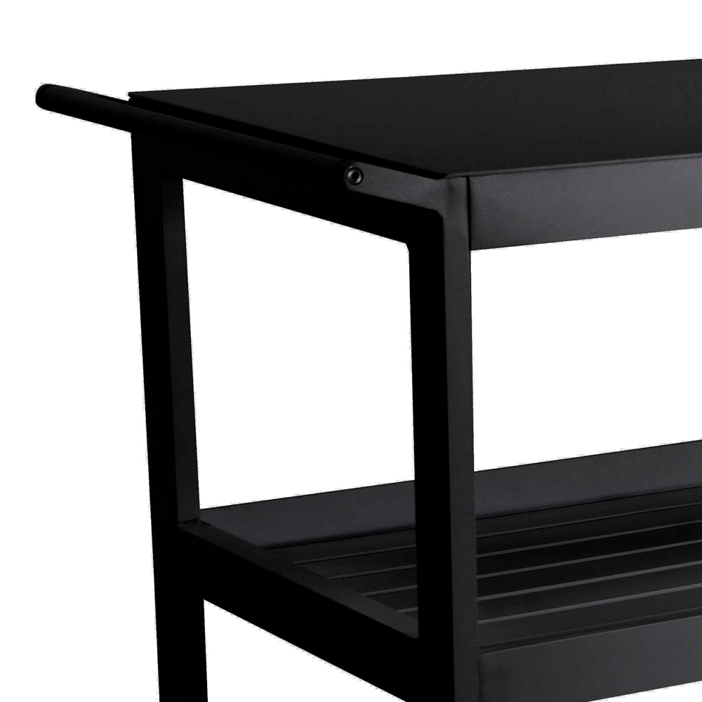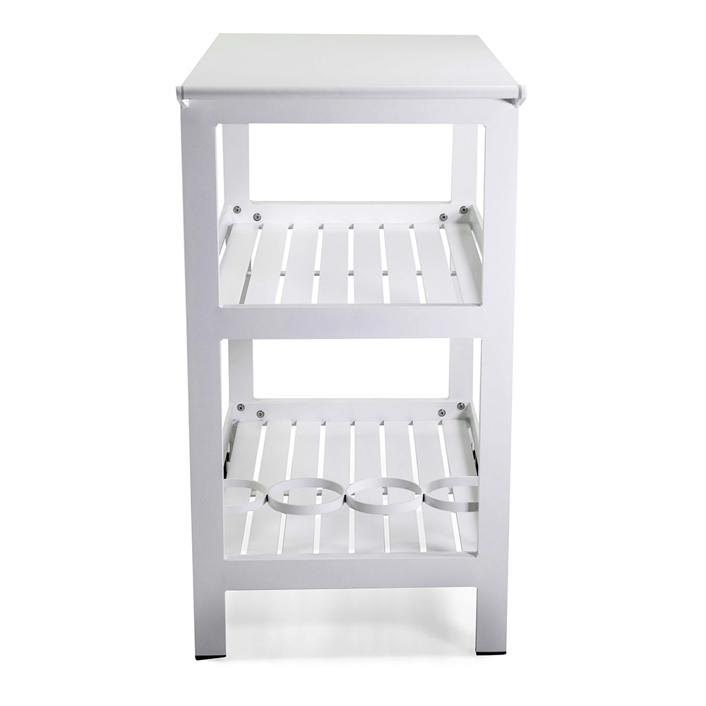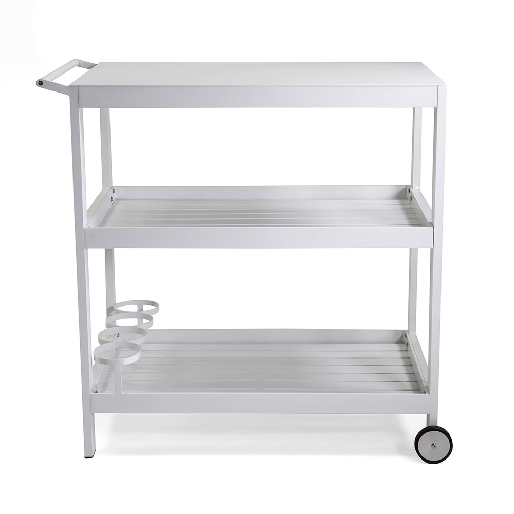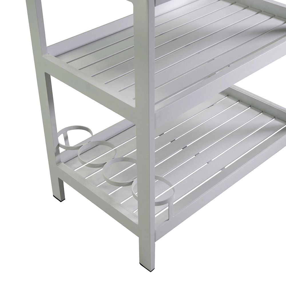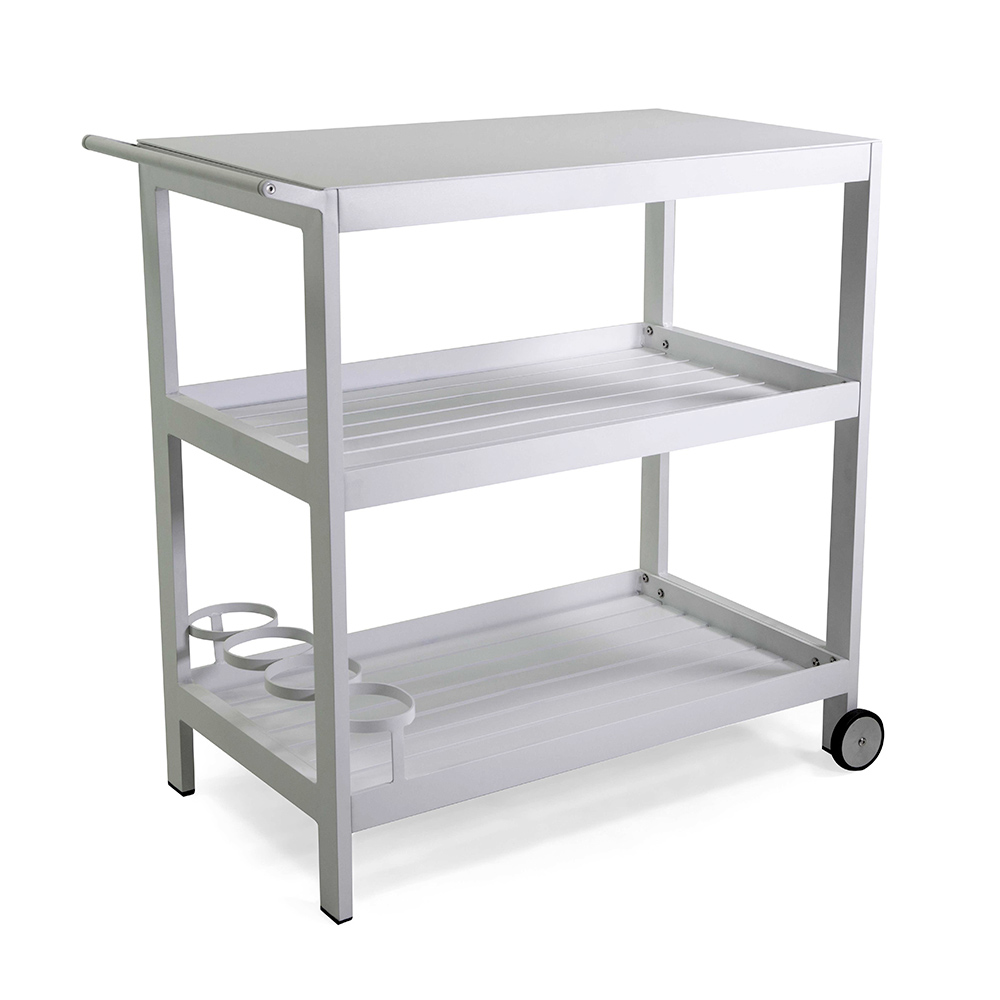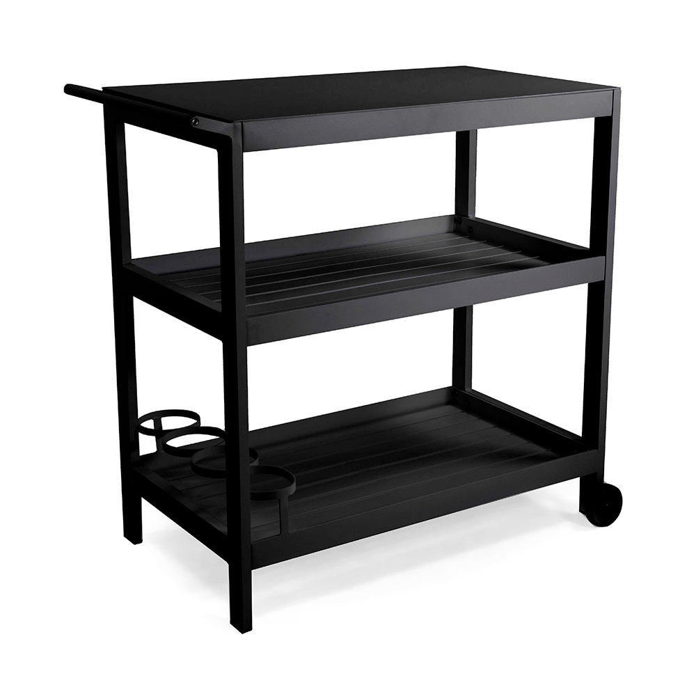 Vozík je vybaven třemi prostornými policemi, které jsou ideální pro uložení nápojů, nádobí nebo rostlin, takže je ideální pro zábavu hostů nebo jako další opora v jakémkoli venkovním prostoru. Díky pevným kolečkům jej lze snadno přemístit tam, kde je potřeba, takže je mimořádně praktický a všestranný.