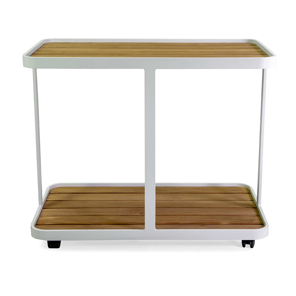 Tento elegantní hliníkový vozík s práškovou povrchovou úpravou je ideální pro vnesení nádechu sofistikovanosti a praktičnosti do vašeho venkovního prostoru. Moderní, minimalistický design doplňují desky z teakového dřeva, které jsou známé svou pevností a odolností, takže tento vozík je ideální pro vnitřní i venkovní použití. Je vybaven snadno ovladatelnými kolečky , která umožňují snadnou přepravu nápojů, potravin nebo rostlin, čímž maximalizují funkčnost bez obětování stylu.
