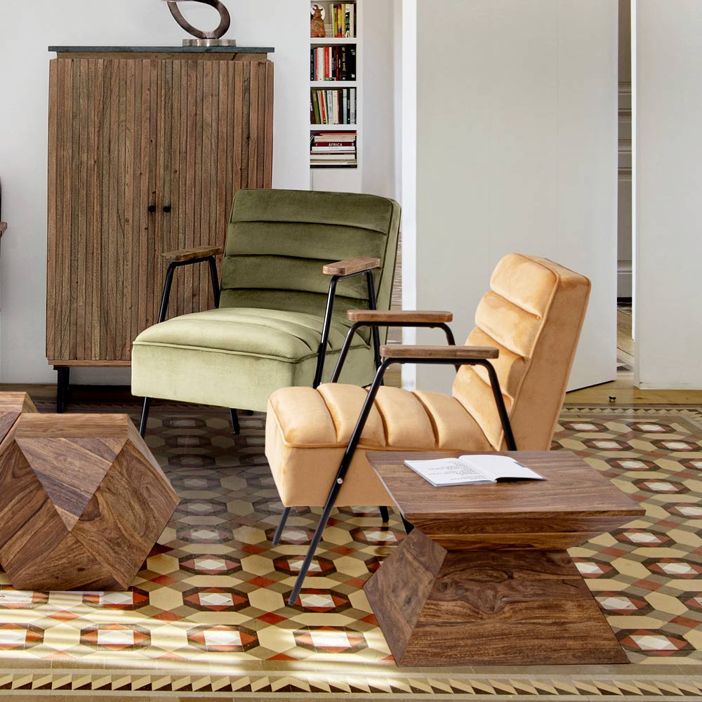 Konferenční stolek do obývacího pokoje s pyramidálním designem ze dřeva sheesham.