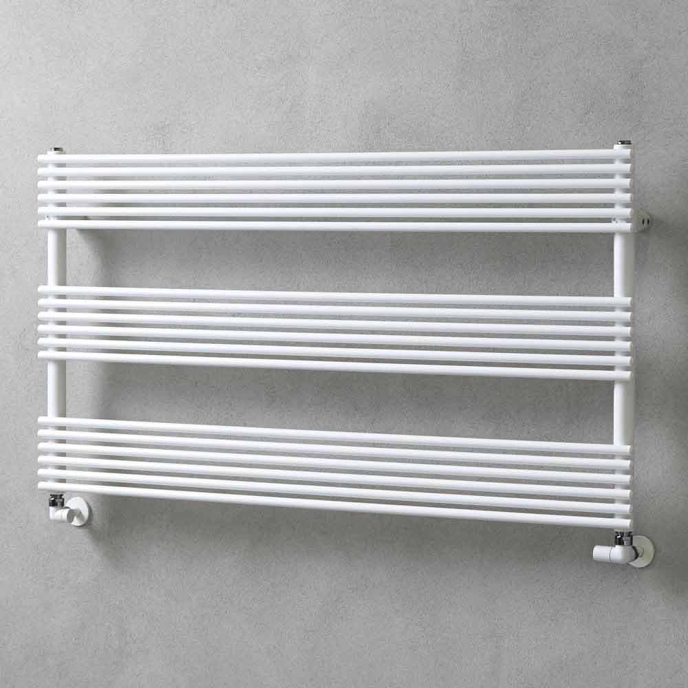 Horizontální trubkový radiátor do koupelny s designem ocelové stěny vyrobený v Itálii.
