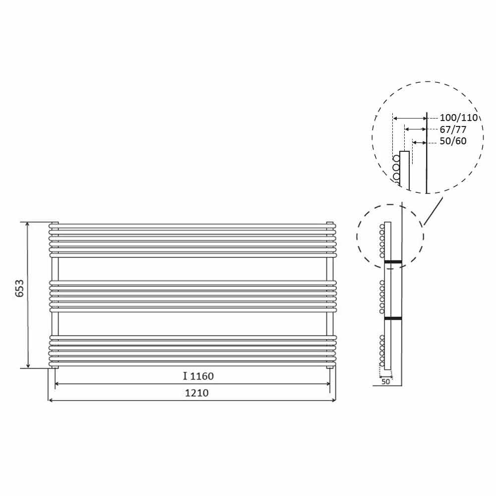 Tento ohřívač ručníků má velmi praktický a funkční horizontální design , vyrobený z horizontálních kulatých trubek, které lze snadno přizpůsobit jakémukoli typu stylu a prostředí.
