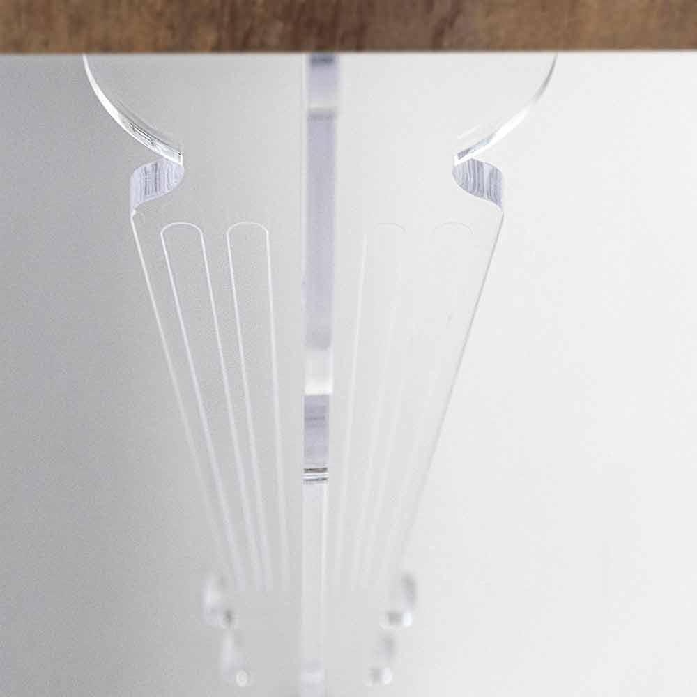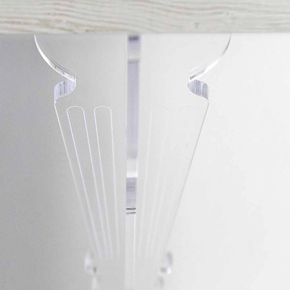 dřeva. Otočené nohy z čistého plexiskla PMMA z panenského polymeru akrylového krystalu v kombinaci s vrchní částí z esence melaminového dřeva s přírodním matným kartáčovaným povrchem vytvářejí efekt