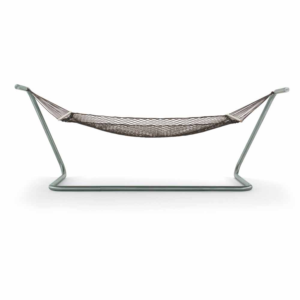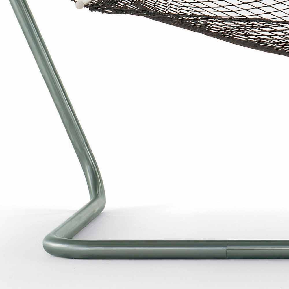 Houpací síť v černé zahradní síti s podstavcem, moderní design vyrobený v Itálii.