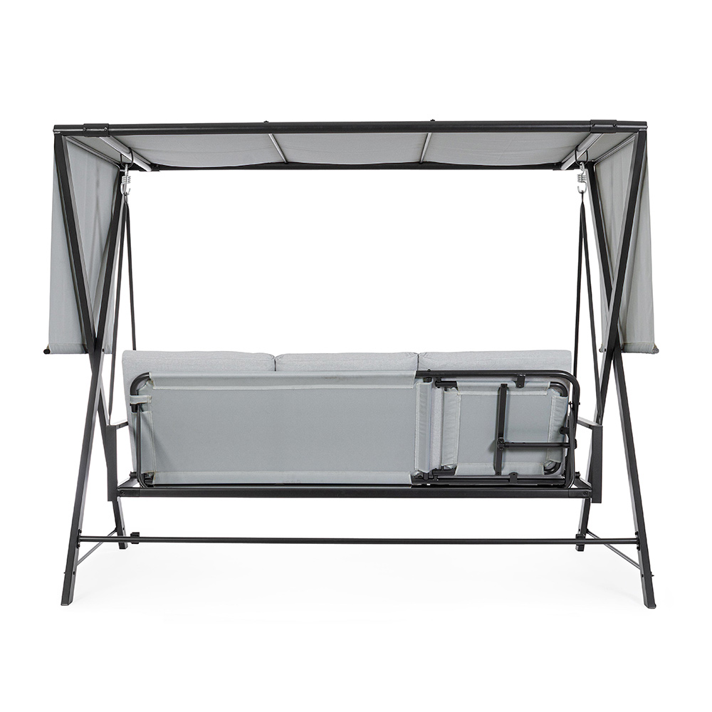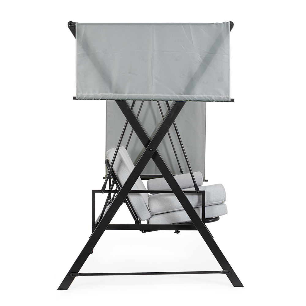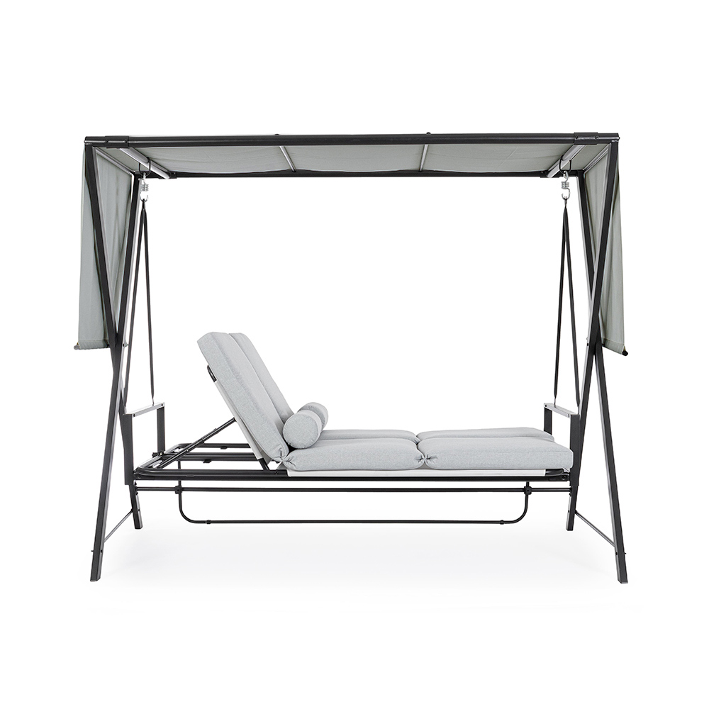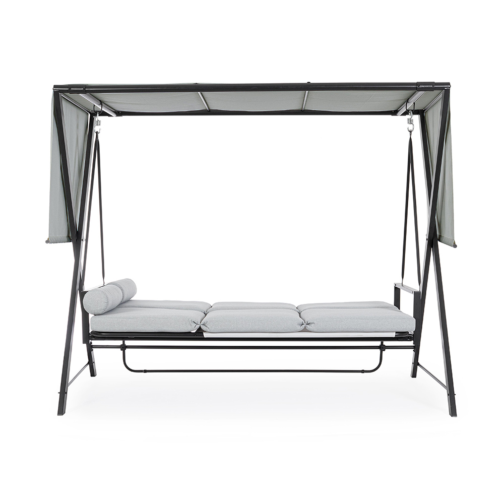 Tato zahradní houpačka je oázou klidu a relaxace, která svým elegantním a pohodlným designem obohatí každý venkovní prostor. Pevná lakovaná kovová konstrukce poskytuje nejen stabilitu, ale také silnou a moderní estetiku. Měkké a příjemné polštáře slibují hodiny pohodlí, ideální pro ponoření se do vzrušujícího čtení nebo pro sladké zdřímnutí ve stínu.