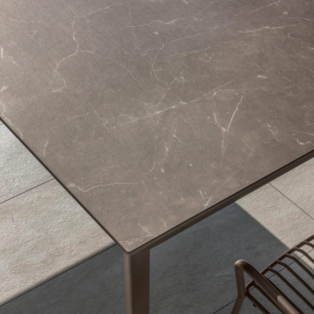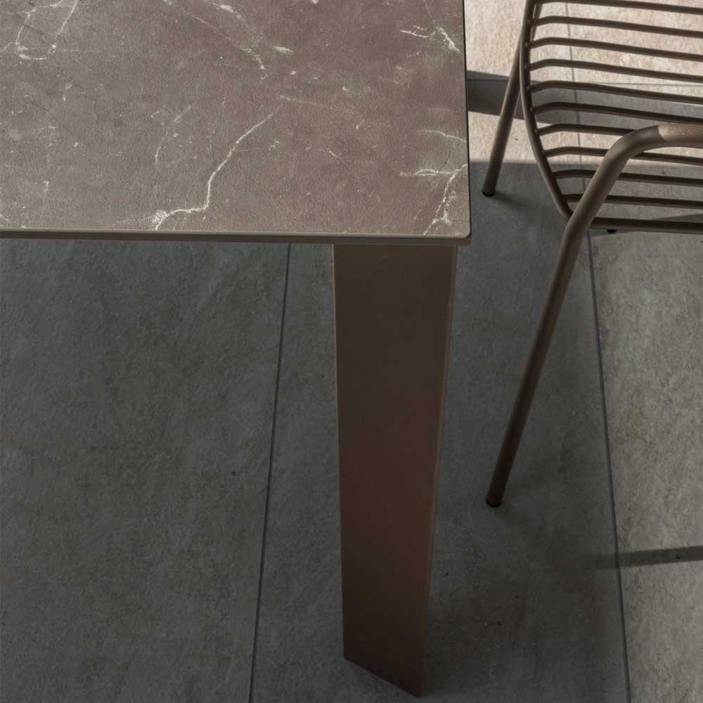 Venkovní jídelní stůl s hpl deskou a kovovou podnoží Made in Italy.