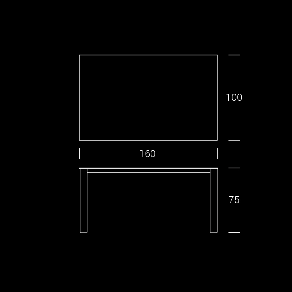 Poznámka : Konstrukce stolu je k dispozici také v povrchové úpravě reliéfní grafit nebo reliéfní bílé. Stůl je k dispozici také ve čtvercové verzi 100 cm.