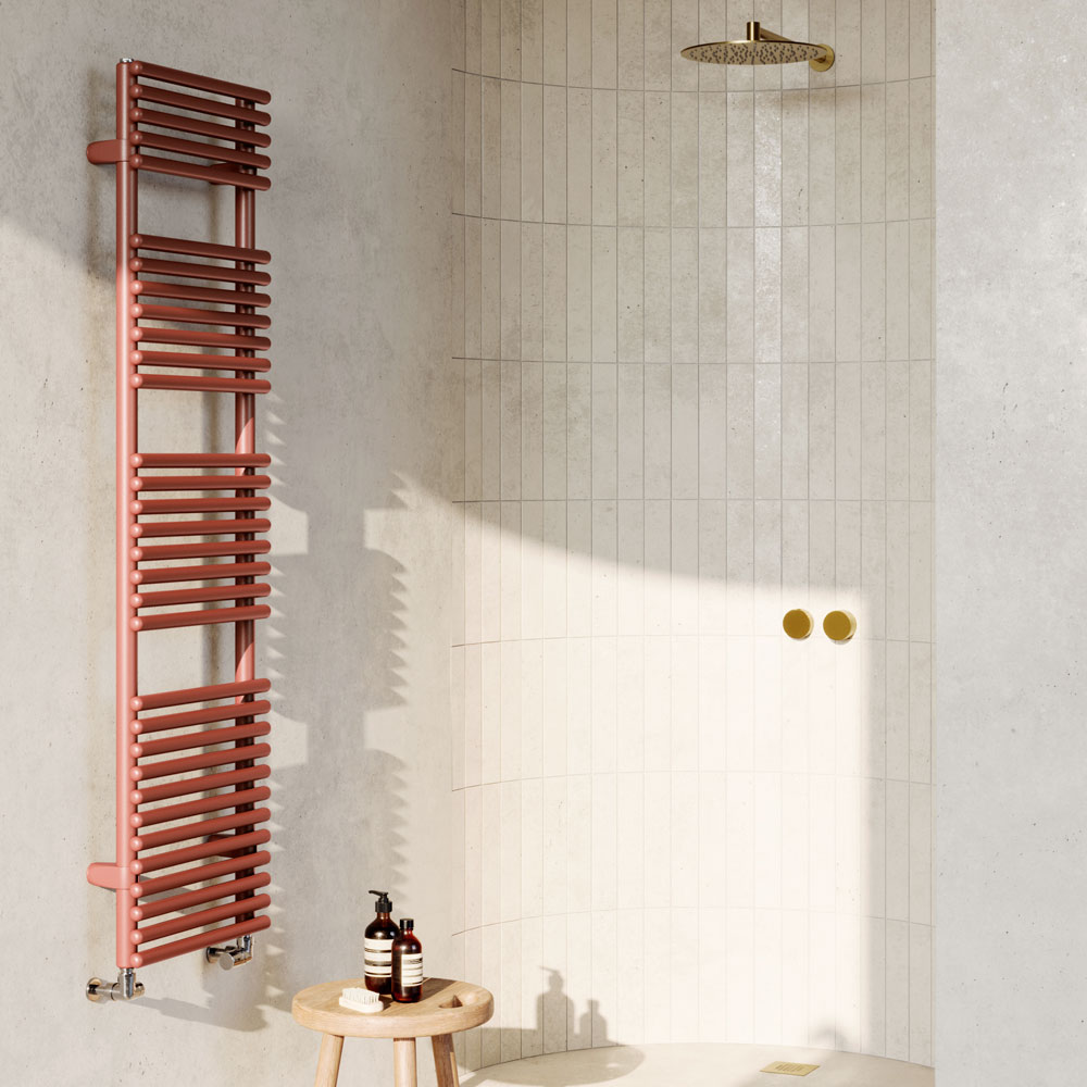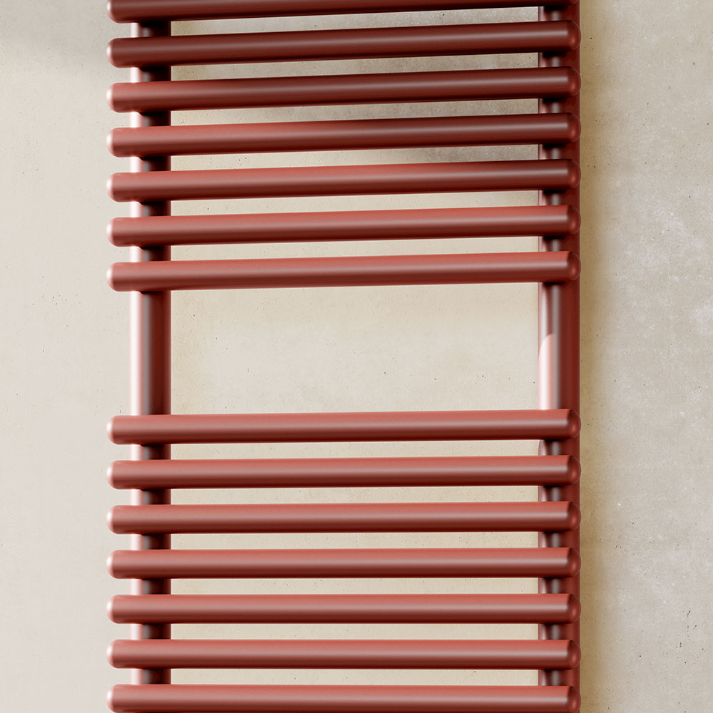 Rozjasněte svou koupelnu tímto rezavým ohřívačem ručníků , skutečným symbolem designu a praktičnosti . Jeho svislé linie a barva jsou navrženy tak, aby nejen zahřály vaše ručníky, ale také dodaly každé místnosti náznak odvážného stylu .