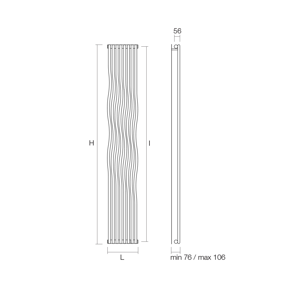 řady zakřivených vertikálních prvků o průměru 2,2 cm navařených na